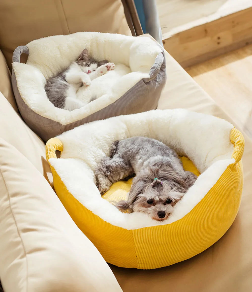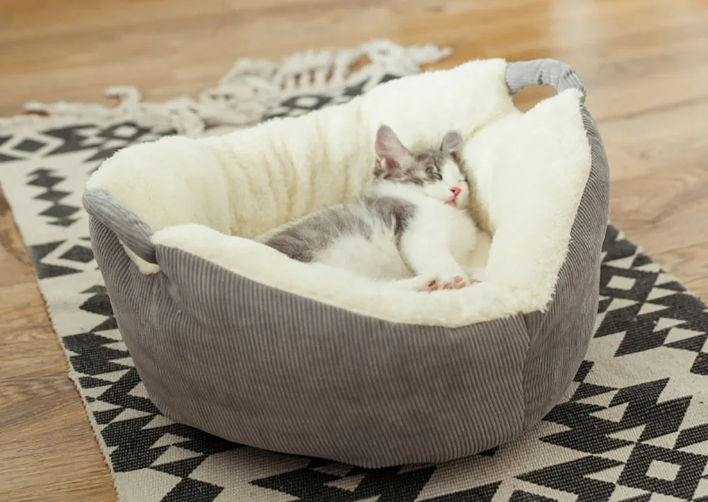 Теплый коврик для кошки, спальный дом, фланелевая подушка для питомца, щенок, питомник, котенок, гнездо с ручной тягой, Осень-зима, для кошек, удобная кровать, диван