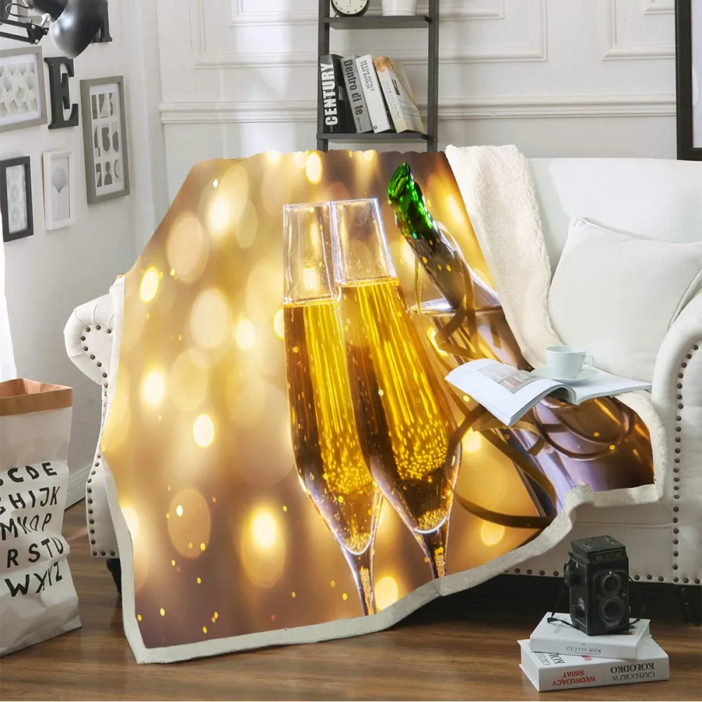 Покрывало с принтом шампанского, мягкое флисовое покрывало из шерпы для кровати, дивана, покрывало, зимнее покрывало для улицы, покрывало для сна, серия вина