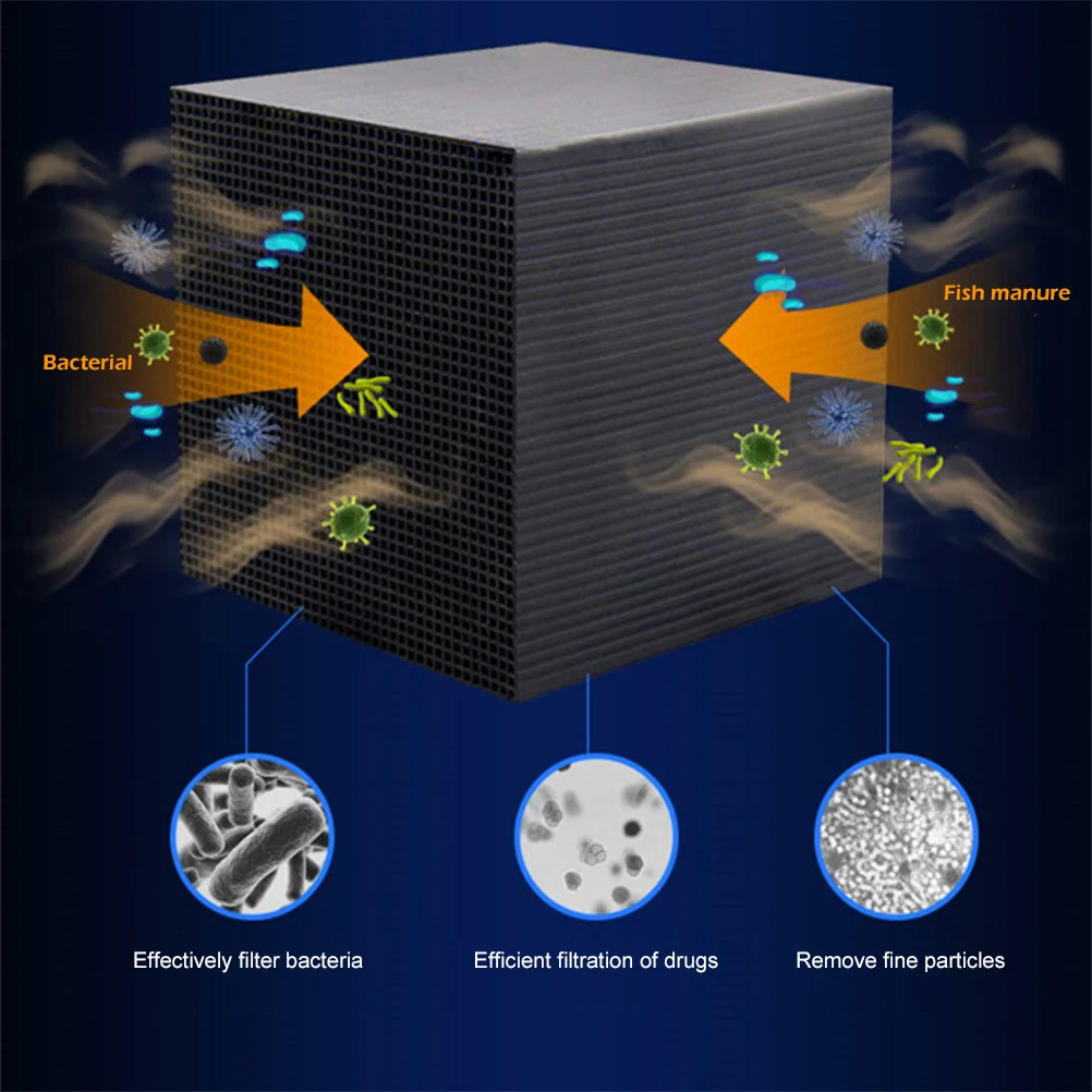 Статический состав, без порошка, без примесей, не вызывает попадания черной воды. Ультрапрочный фильтр для фильтрации и поглощения не впитывает грязь, бактерии или химические вещества, которые могут нанести вред здоровью вашей домашней рыбы.