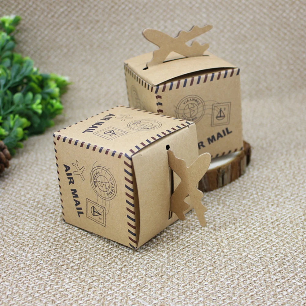Прибытие в плоской коричневой бумаге, и легко складывать. Каждая коробка конфет сделана рафинированная бумага карты, не легко деформируется. Милый креативный рисунок самолета, простой, но практичный. Можно использовать для любого случая: свадьбы, помолвки, юбилеи, детский душ, вечеринки и т. Д.