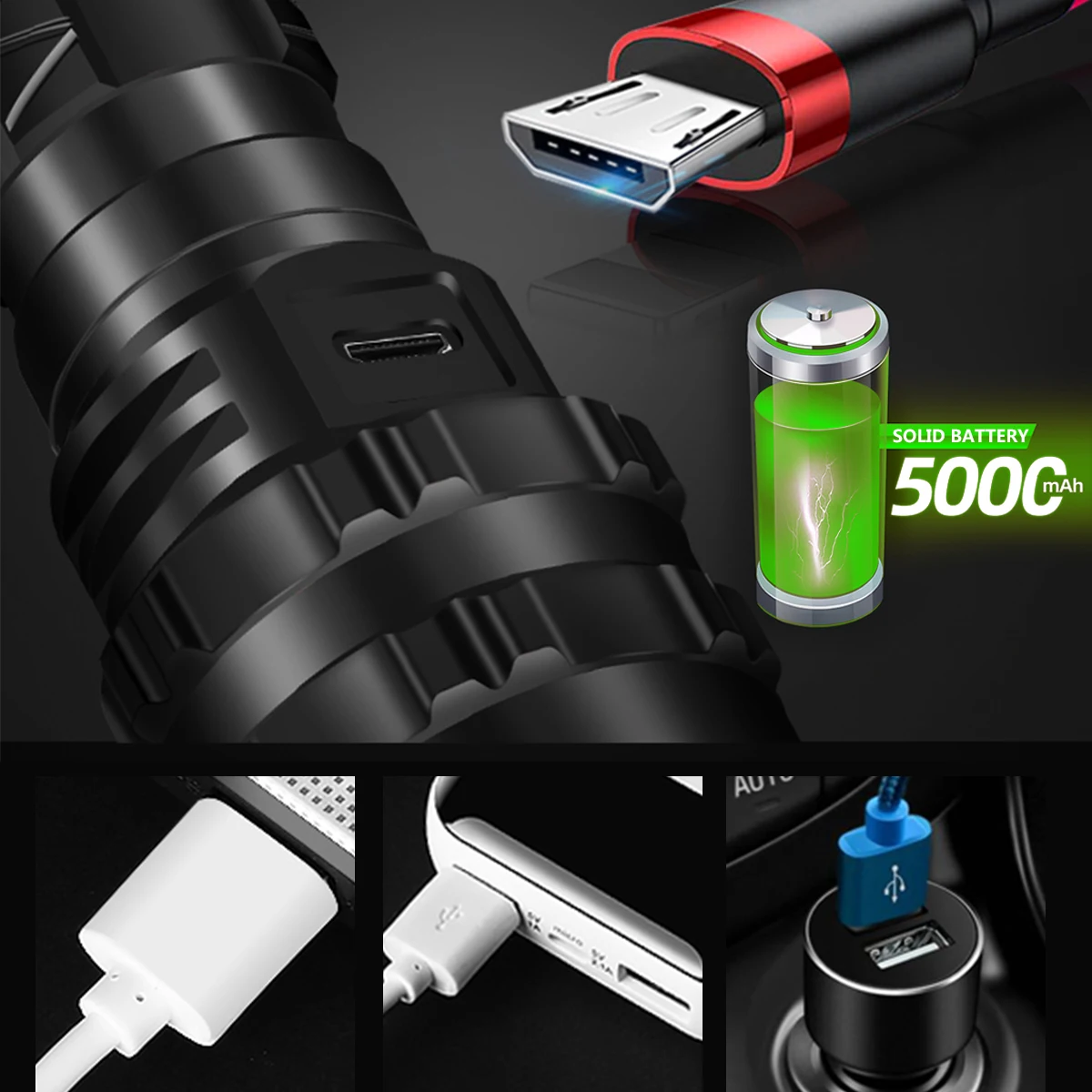 D: XHP50.2 светодиодный черный фонарик + USB кабель