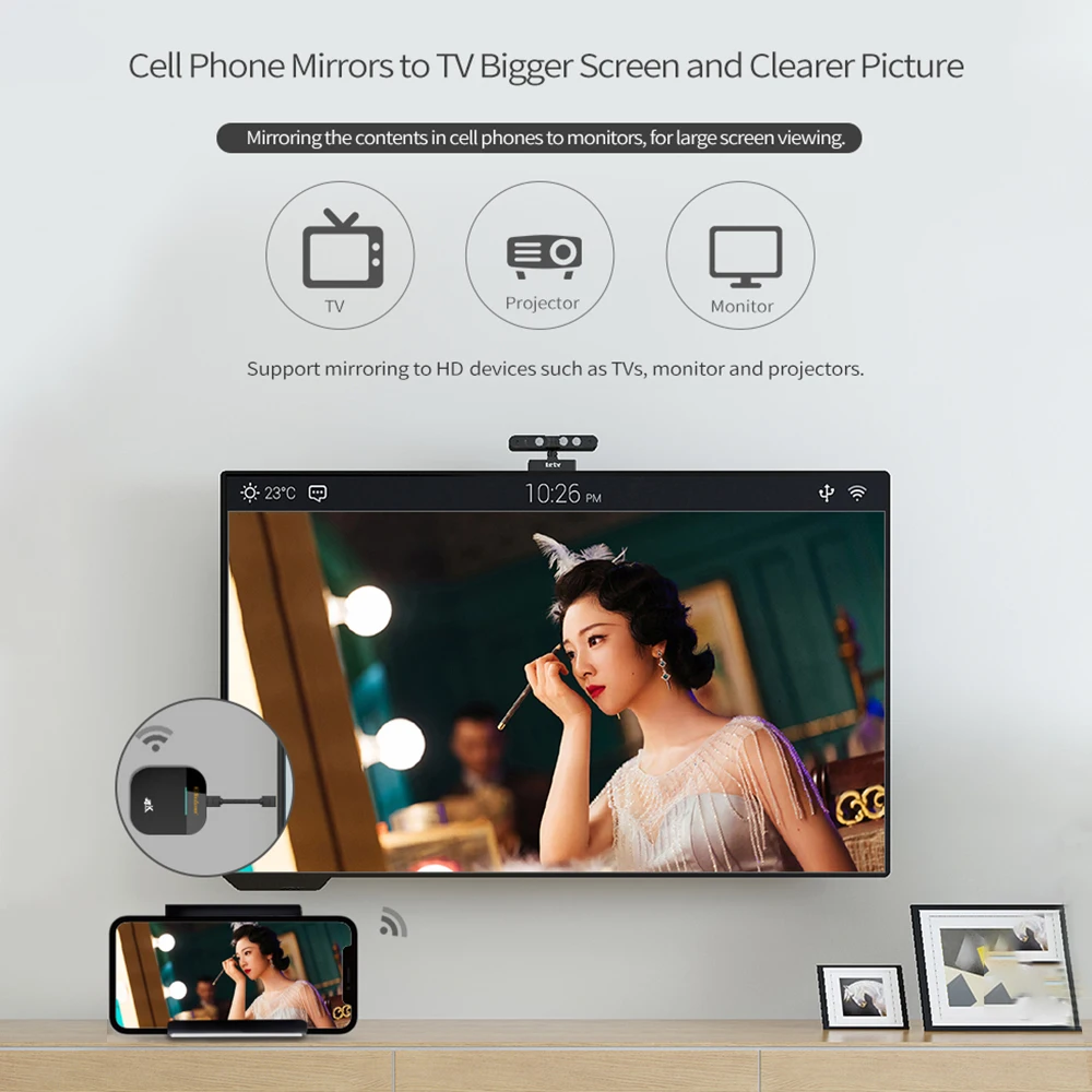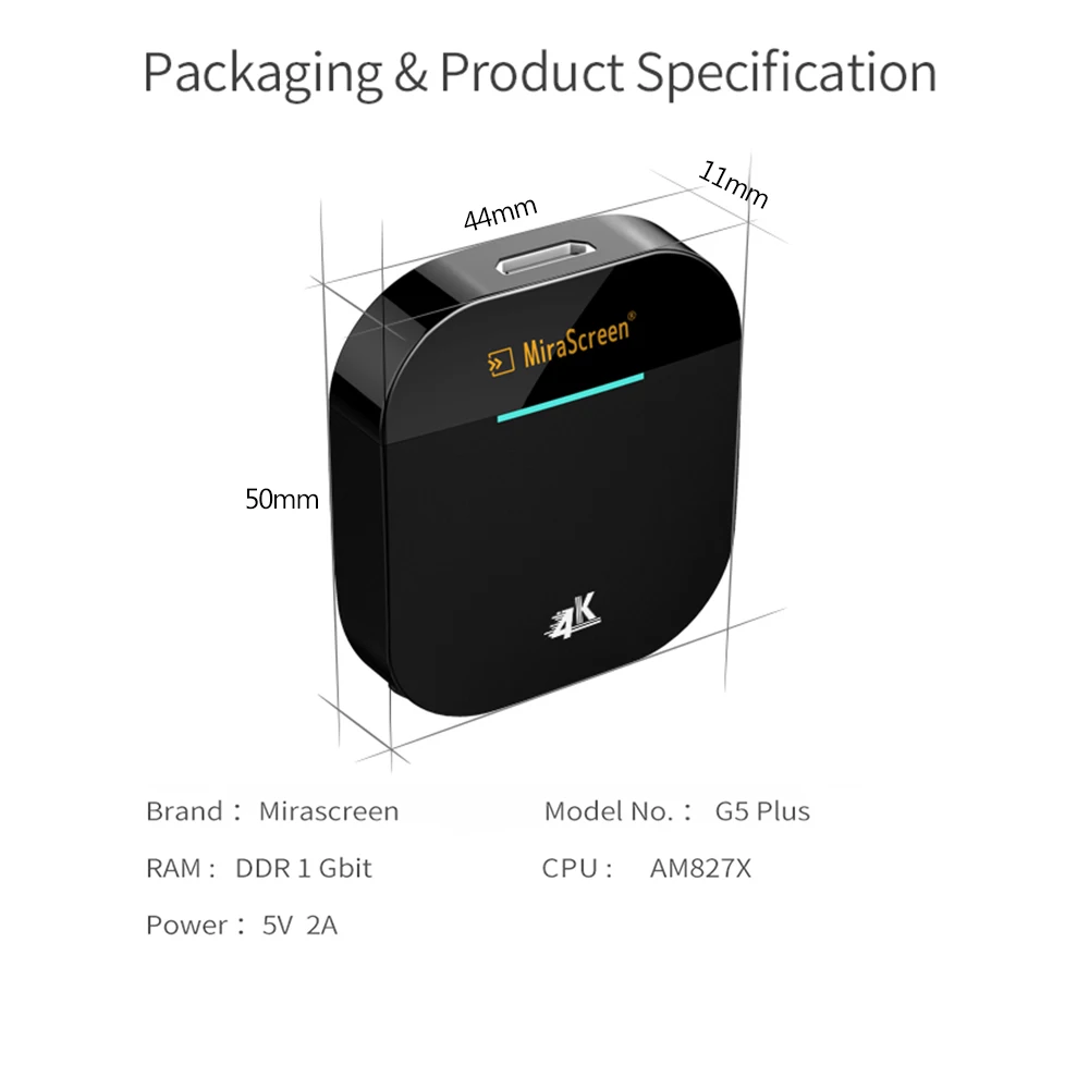 Функция On-screen, поддержка передачи видео с разрешением 4K, синхронное зеркальное отображение смартфонов, весь экран планшета на HDTV или проектор.