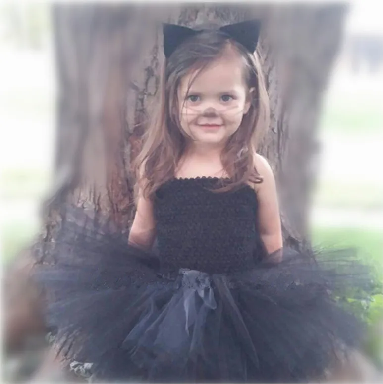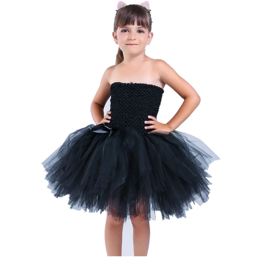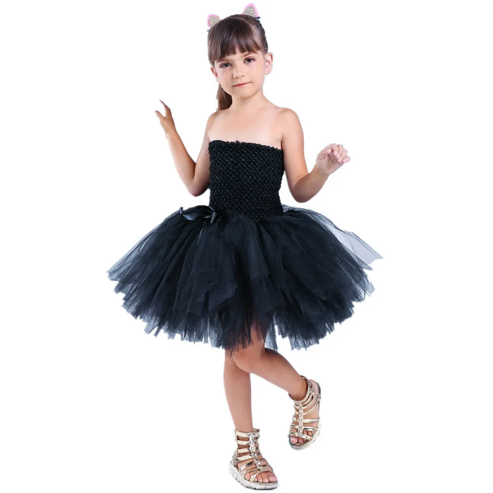 Платье-пачка для девочек с черным котом; Головной убор с хвостом; Праздничное платье для девочек на день рождения; Детское представление на Хэллоуин; Костюмы для костюмированной вечеринки