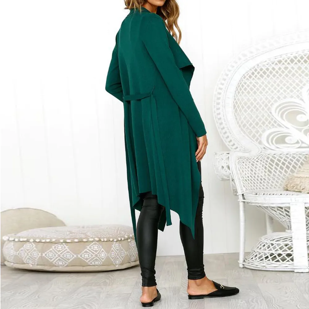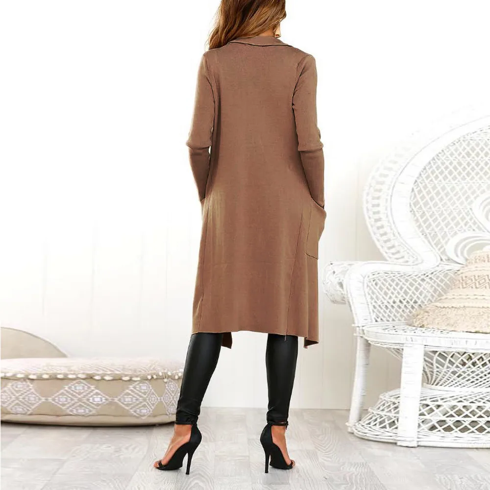 Женский короткий кардиган с длинным рукавом, однотонный длинный кардиган из кожи, Открытое Спереди