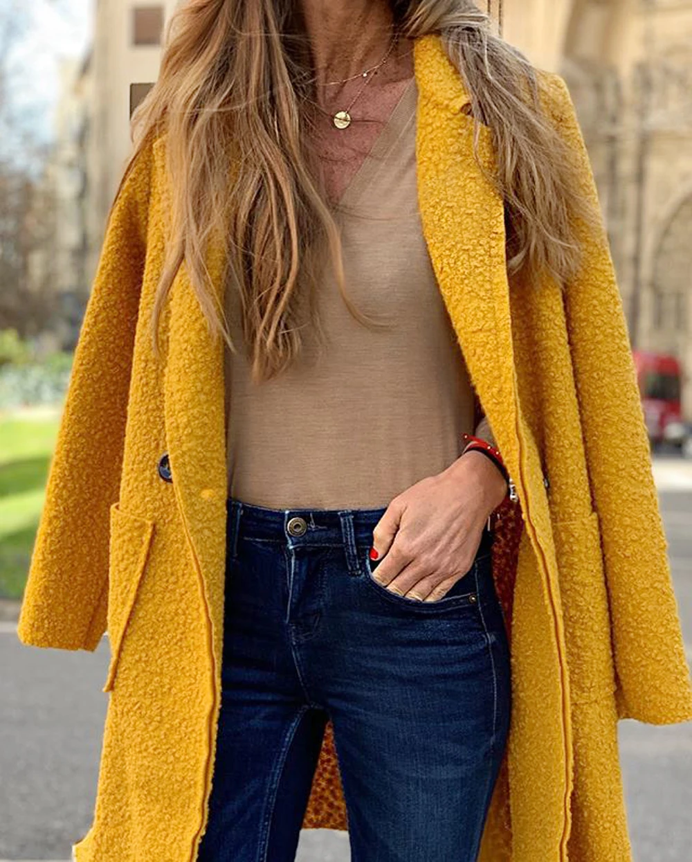 Женское шерстяное пальто осень-зима, длинный рукав, отложной воротник, оверсайз-блейзер, верхняя одежда, куртка, элегантные пальто свободного размера плюс