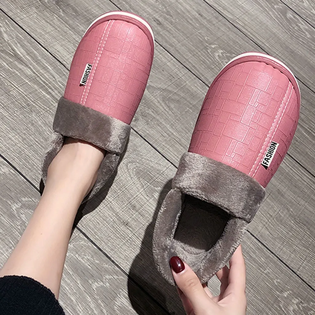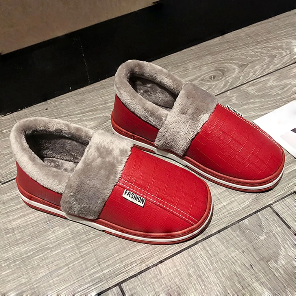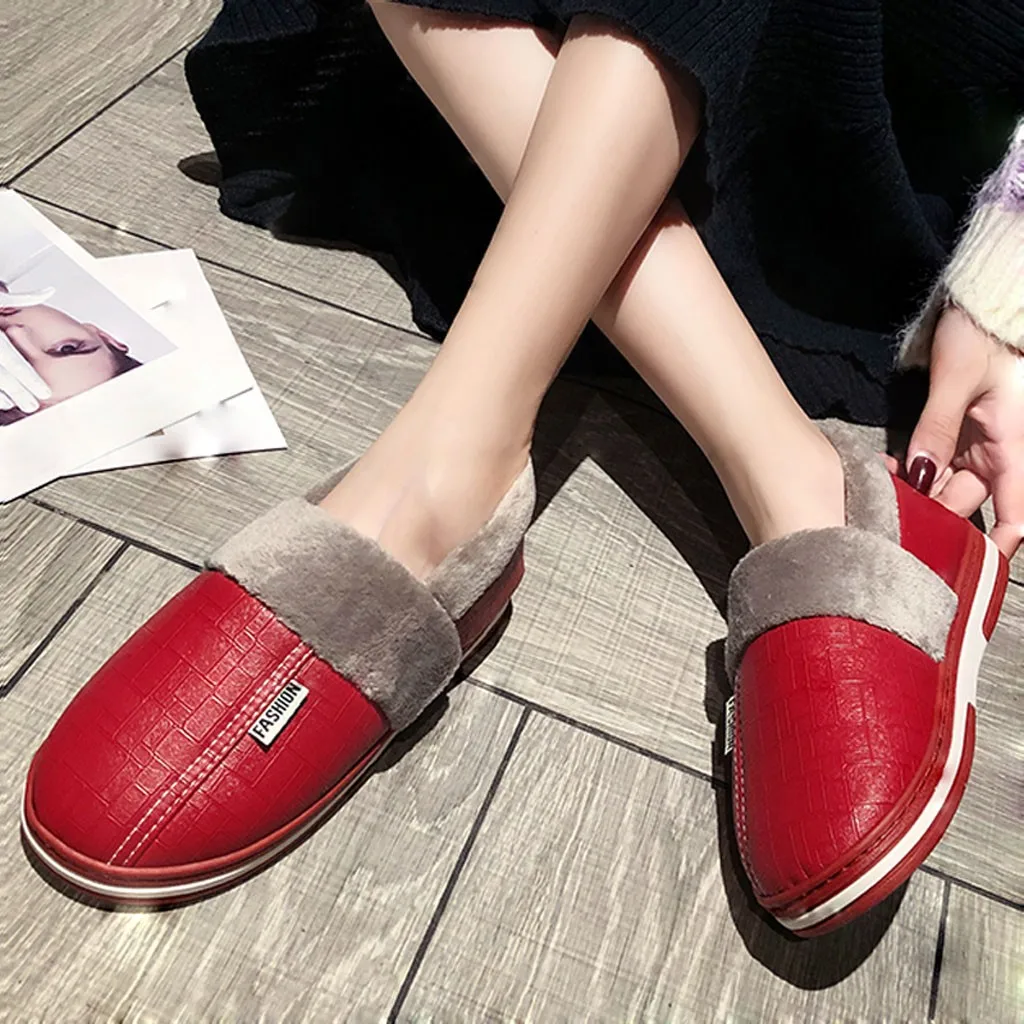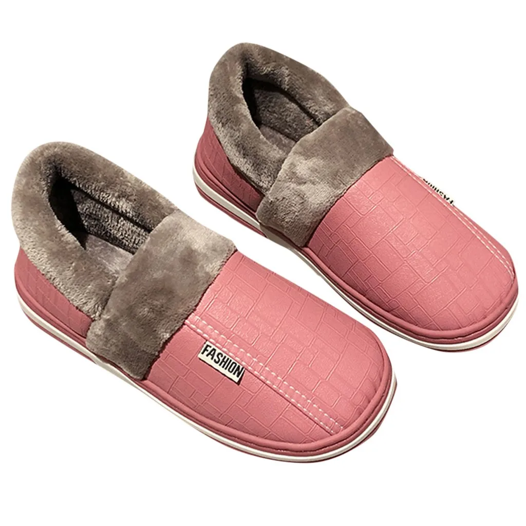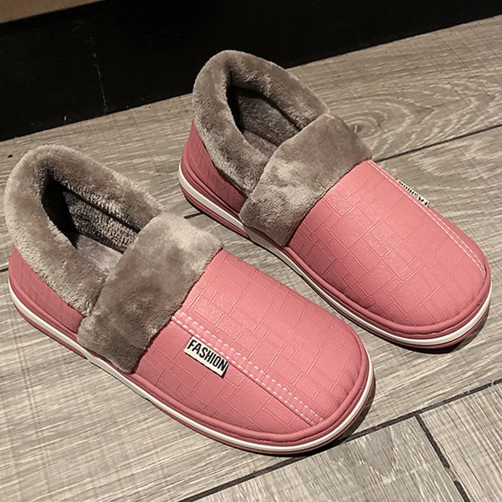 Зимние парные тапочки из хлопка; женская обувь; нескользящая прошитая плюшевая обувь на платформе