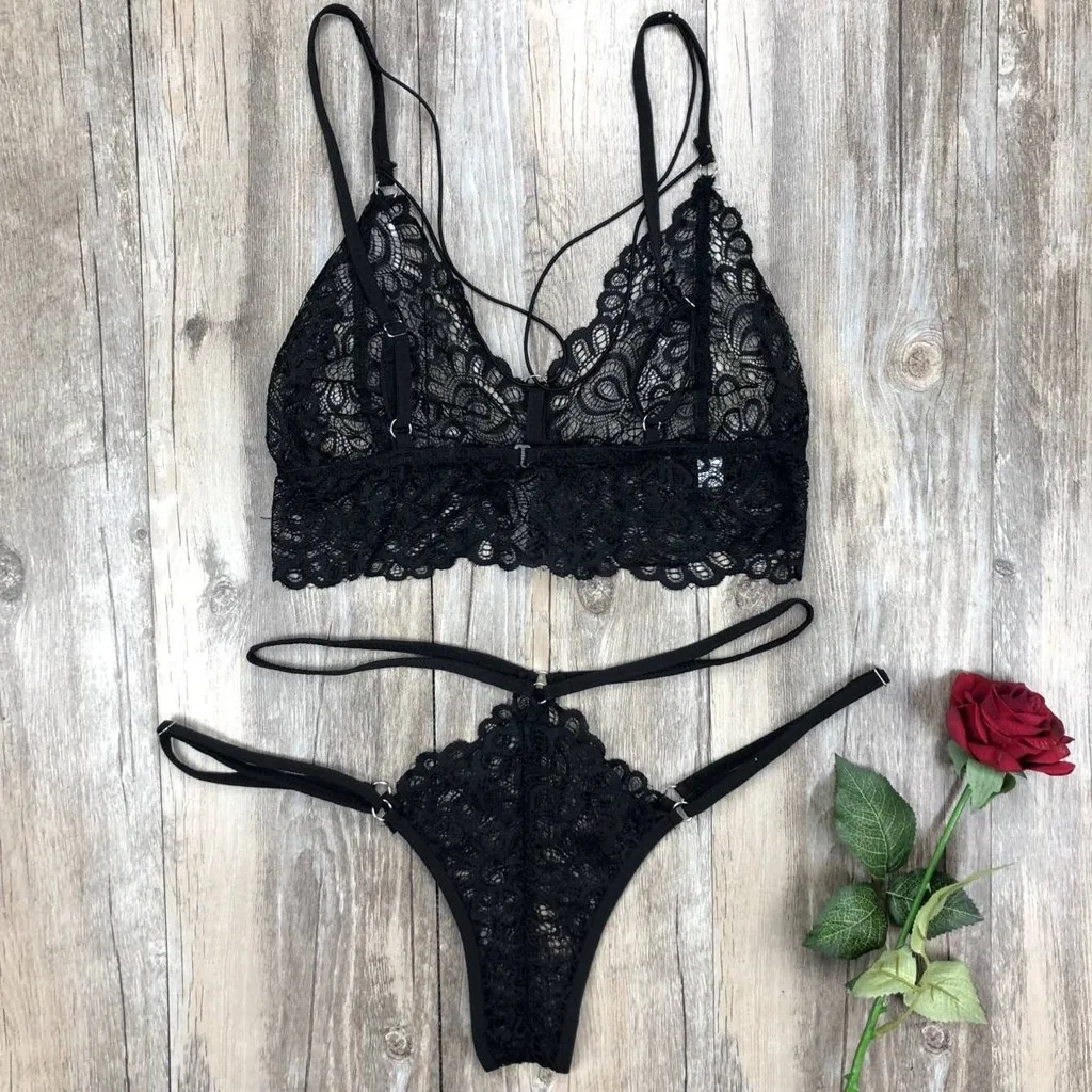 Модный женский кружевной сексуальный комплект нижнего белья из бюстгальтера и трусиков