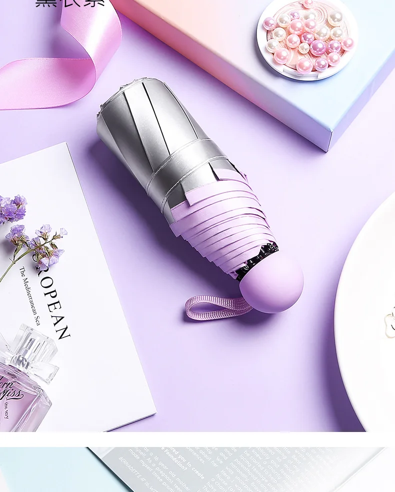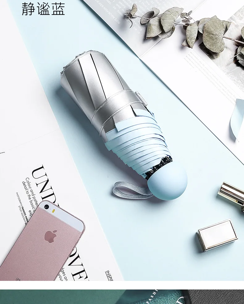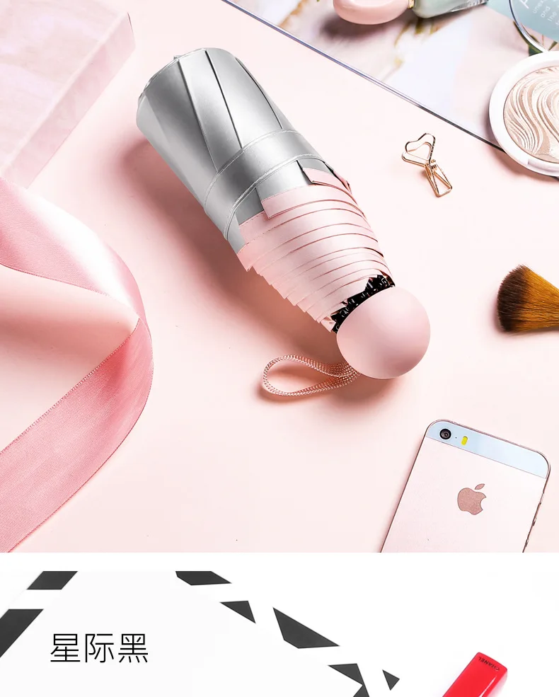 Новая прокладка для упаковки титана серебряный цвет ручка пять раз зонтик солнцезащитный складной зонтик, УФ Защита Размер зонта: 98x58 см Размер хранения зонта: 19 см Зонтик: 8k Вес: 290 г Зонтик кости: волокно Цвет: белый/розовый/желтый/фиолетовый/зеленый/синий/черный Теплый совет: погрешность измерения вручную составляет 1-2 см