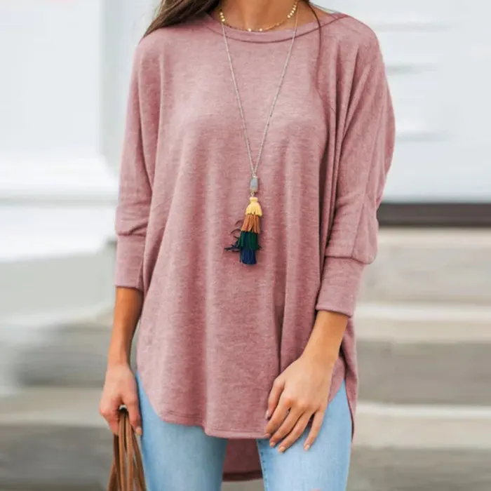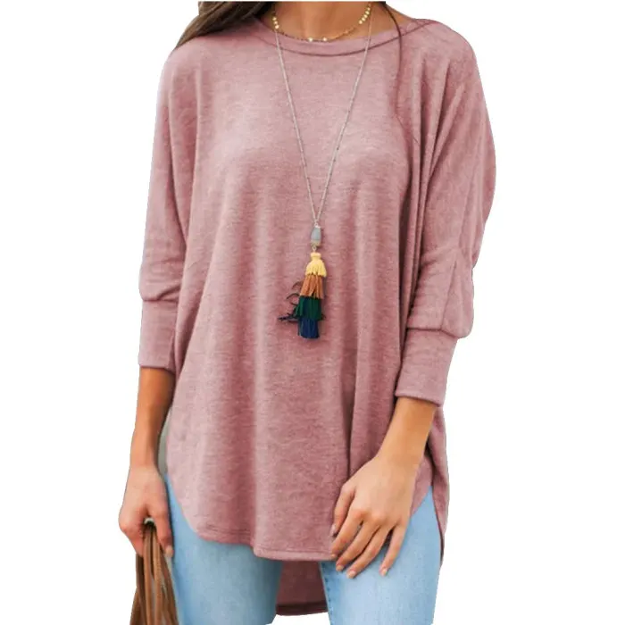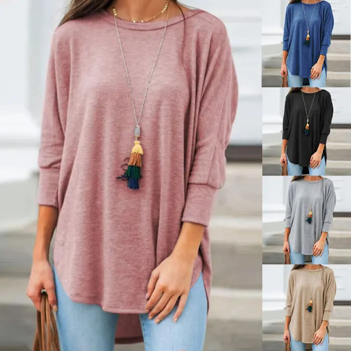 Осенние женские футболки с асимметричным подолом, однотонные футболки с круглым воротником и укороченными рукавами, женские топы DOD886