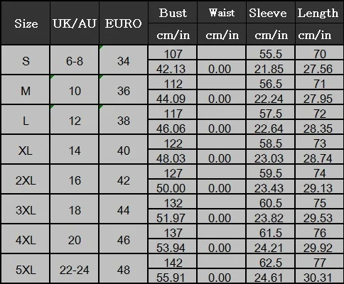 Размер евро Размер Великобритания/Австралия Размер Бюст Длина рукава