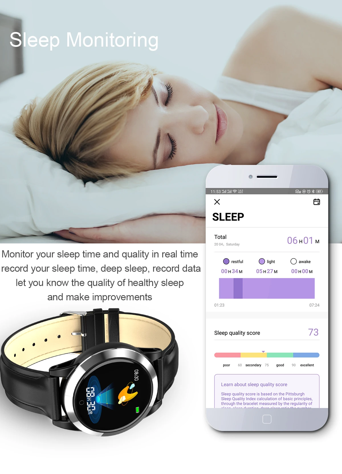 1. встроенный высокоточный датчик ECG + PPG, поддерживает мониторинг сердечного ритма/ЭКГ/кровяного давления/сна, в сочетании с интеллектуальными данными приложения, может помочь вам лучше понять свой собственный статус здоровья. Защитите ваше здоровье в режиме реального времени (Примечание: только для справки, не для медицинских целей и доказательства).