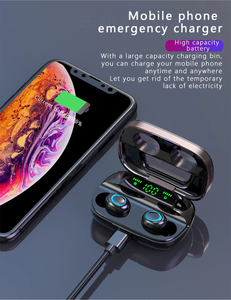 5,0 настоящая Беспроводная bluetooth-гарнитура Сенсорный/бинауральный HD вызов/светодиодный дисплей с двойным аккумулятором