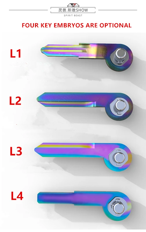 Название продукта: Benali Key Head Материал изделия: T6063 национальный стандарт алюминиевого сплава Ключ Embryo L1: подходит для ключа Benali Ключ Embryo L2: подходит для серии весеннего ветра, Yamaha Qiaoge/Fuxi 100, CB190 серии/GS125/Lightning GT Street Running Edition/Tianying Brand TY150T-5/Monkey M3 Ключ Embryo L3: подходит для автомобиля с канавкой справа с ключом embryo. Пожалуйста, сравните размеры. Ключ Embryo L4: подходит для безрифленых типов телячьей и Yadi электромобилей Чехол для ключей Цвет: красный и черный, серебристый и черный, все черное, Жженый синий Цвет эмбриона ключа: Цветной