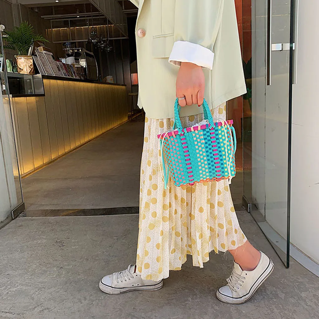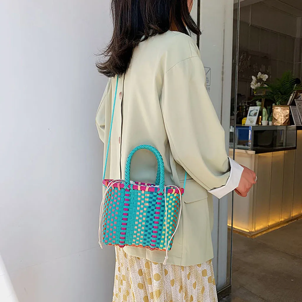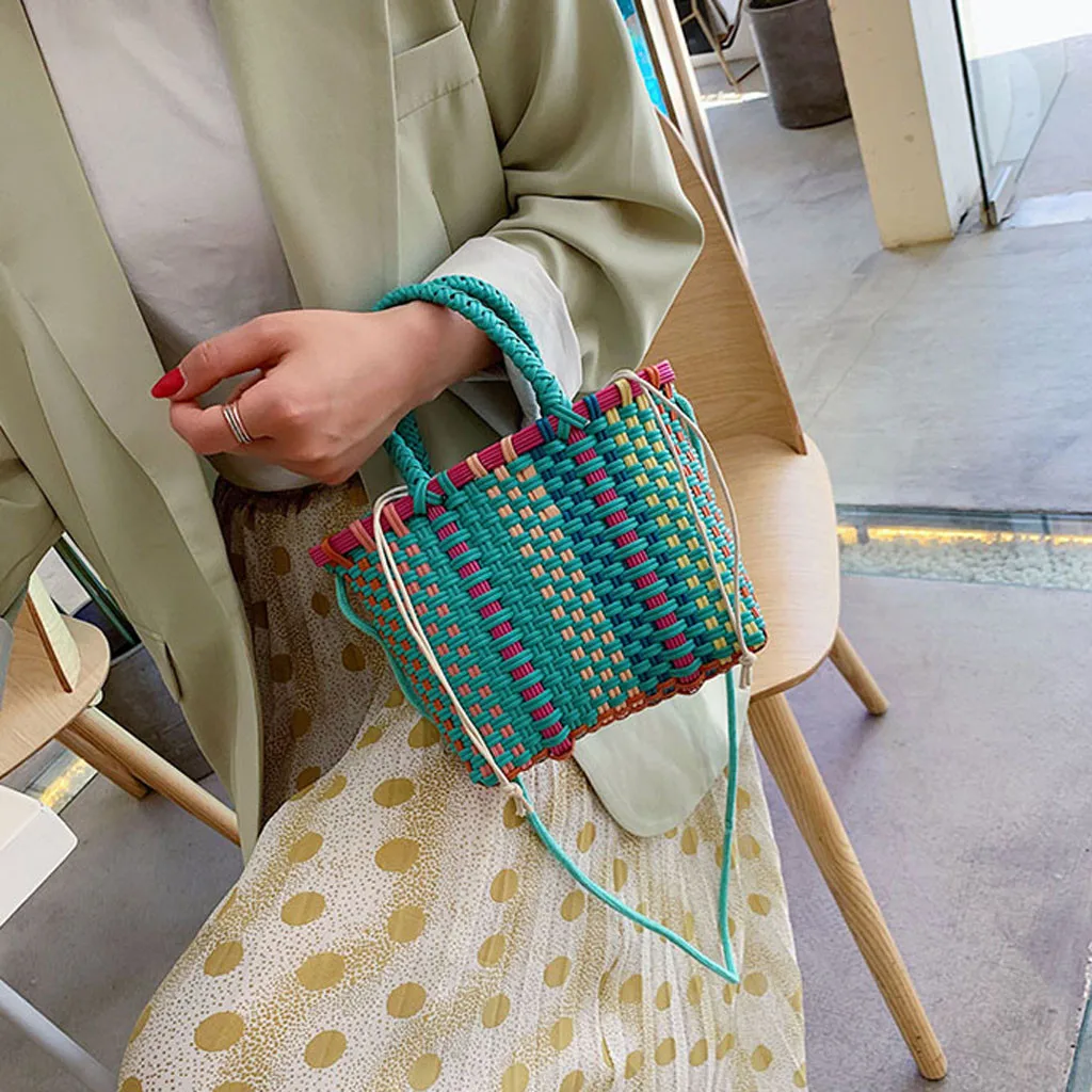 Женские плетеные пляжные сумки корзина для покупок полосатая ручная трикотажная Сумка-тоут