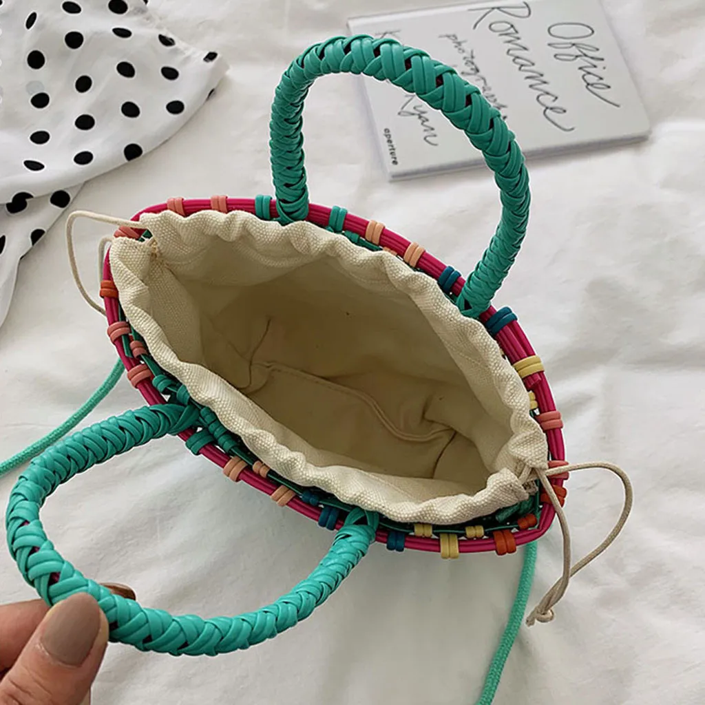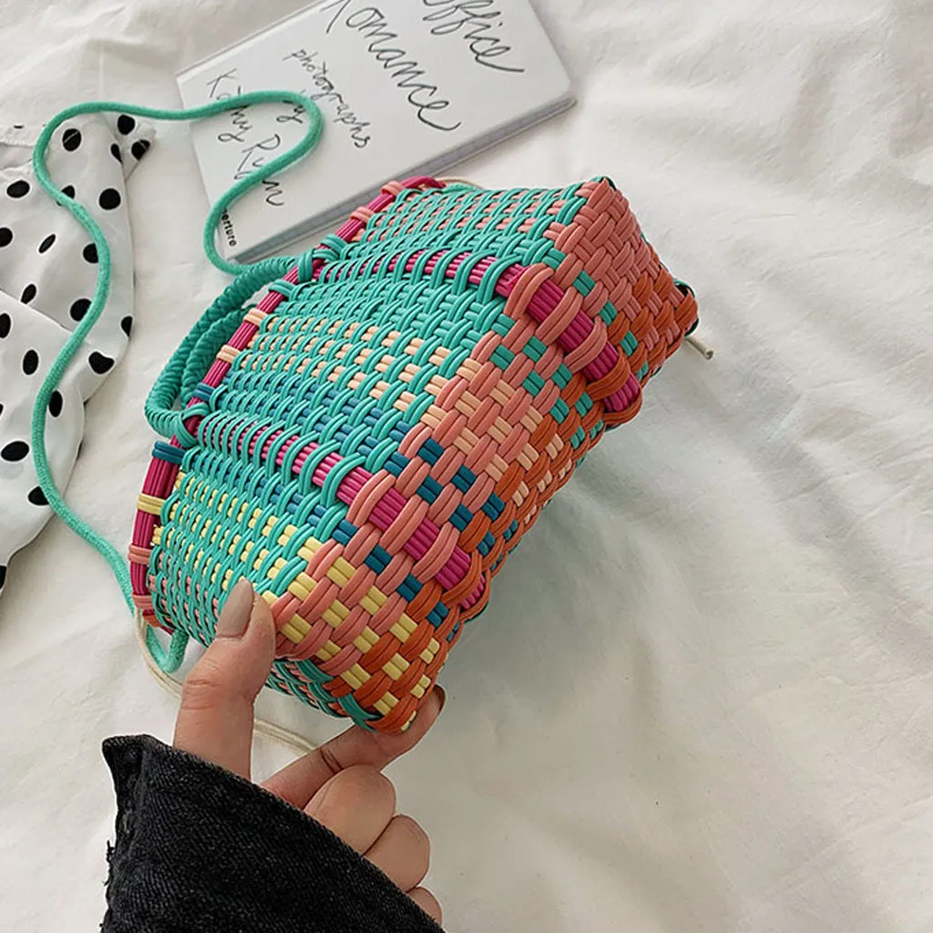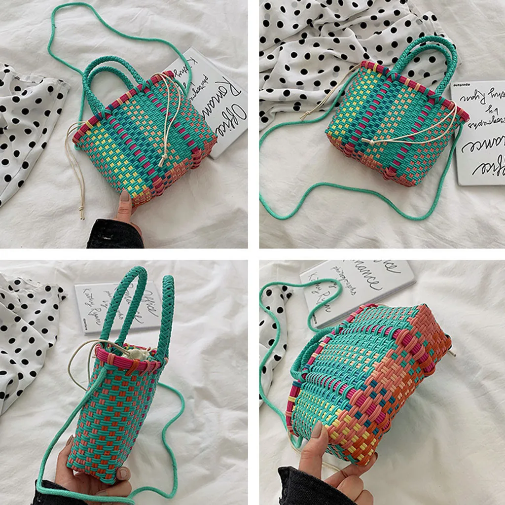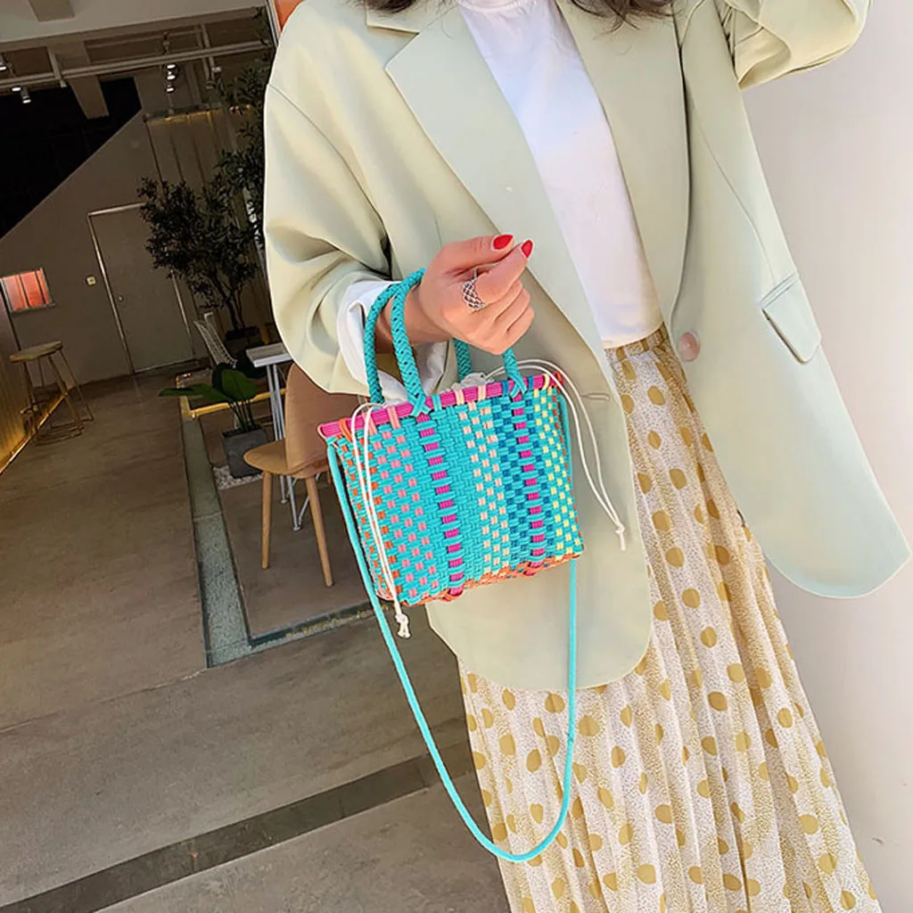 Женские плетеные пляжные сумки корзина для покупок полосатая ручная трикотажная Сумка-тоут