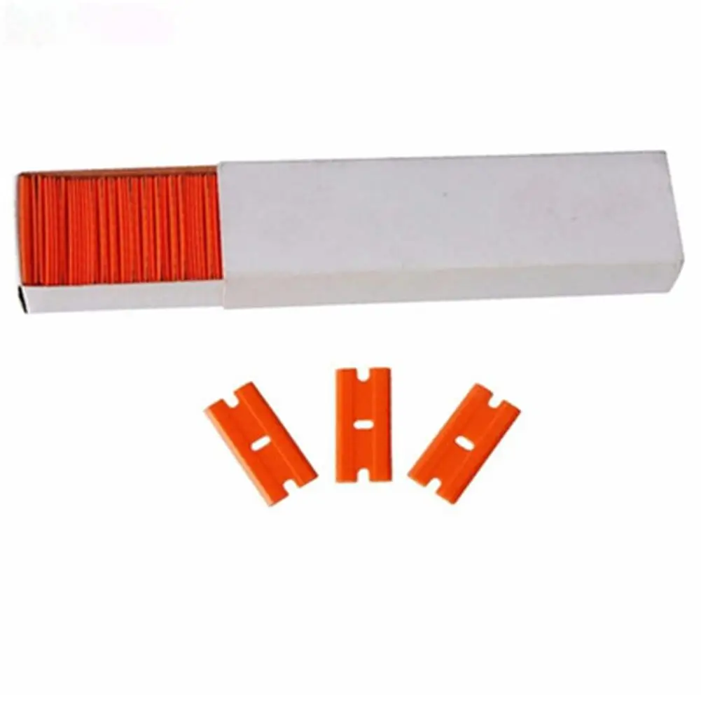 100 шт. Пластиковые лезвия для бритвы с двойными краями, стекло для очистки, скребок из углеродного волокна, Виниловая пленка для автомобиля, стикер, Ракель