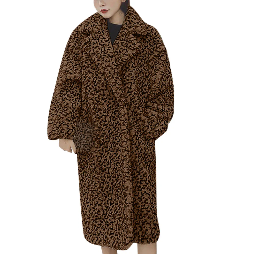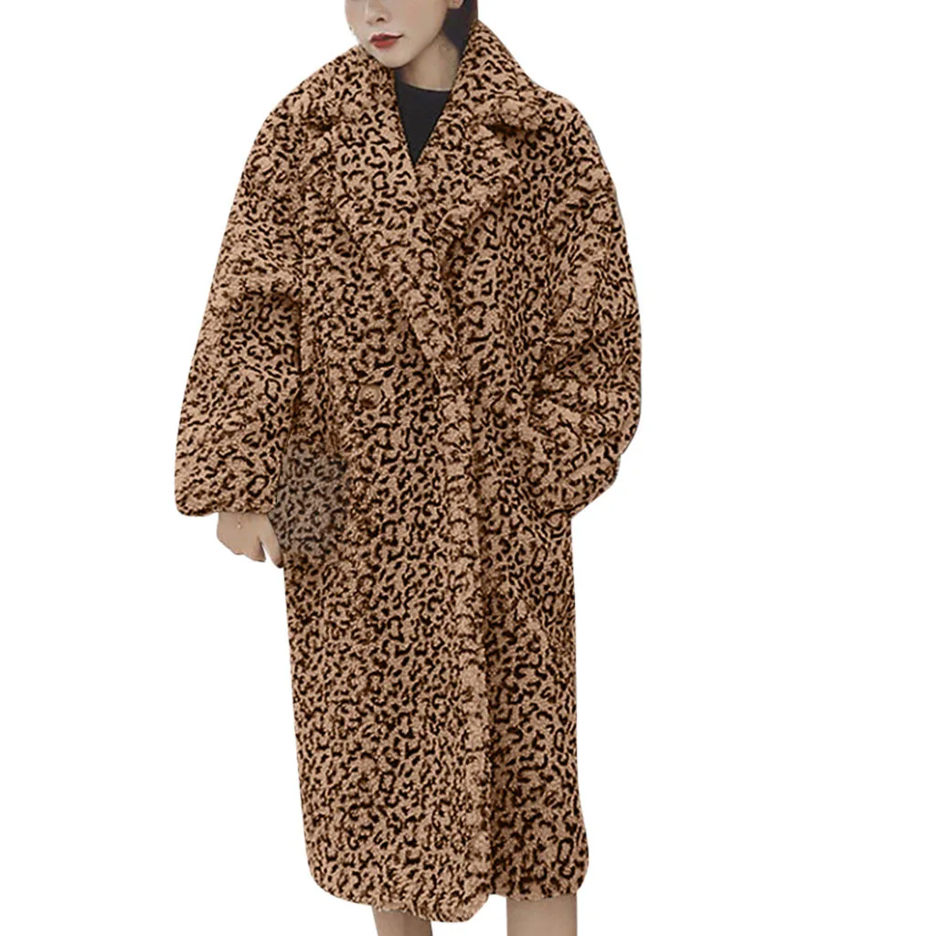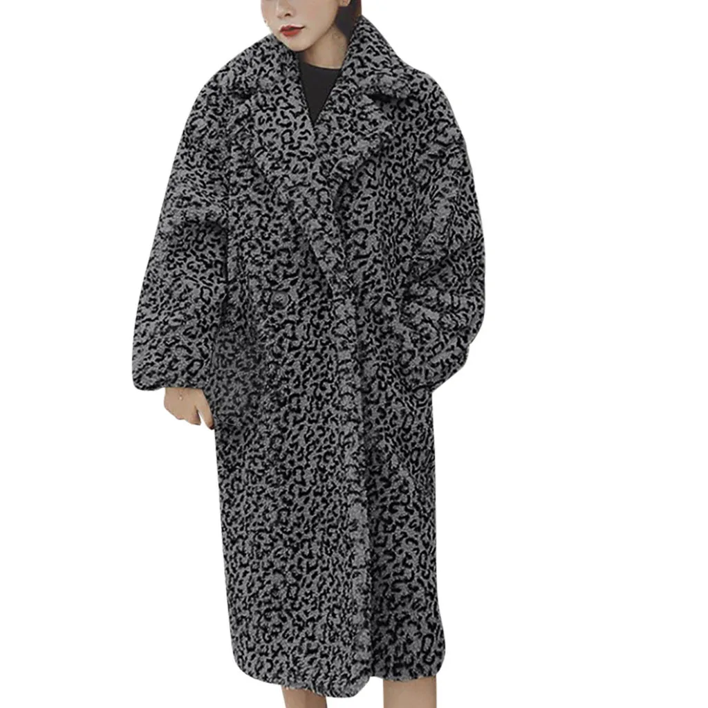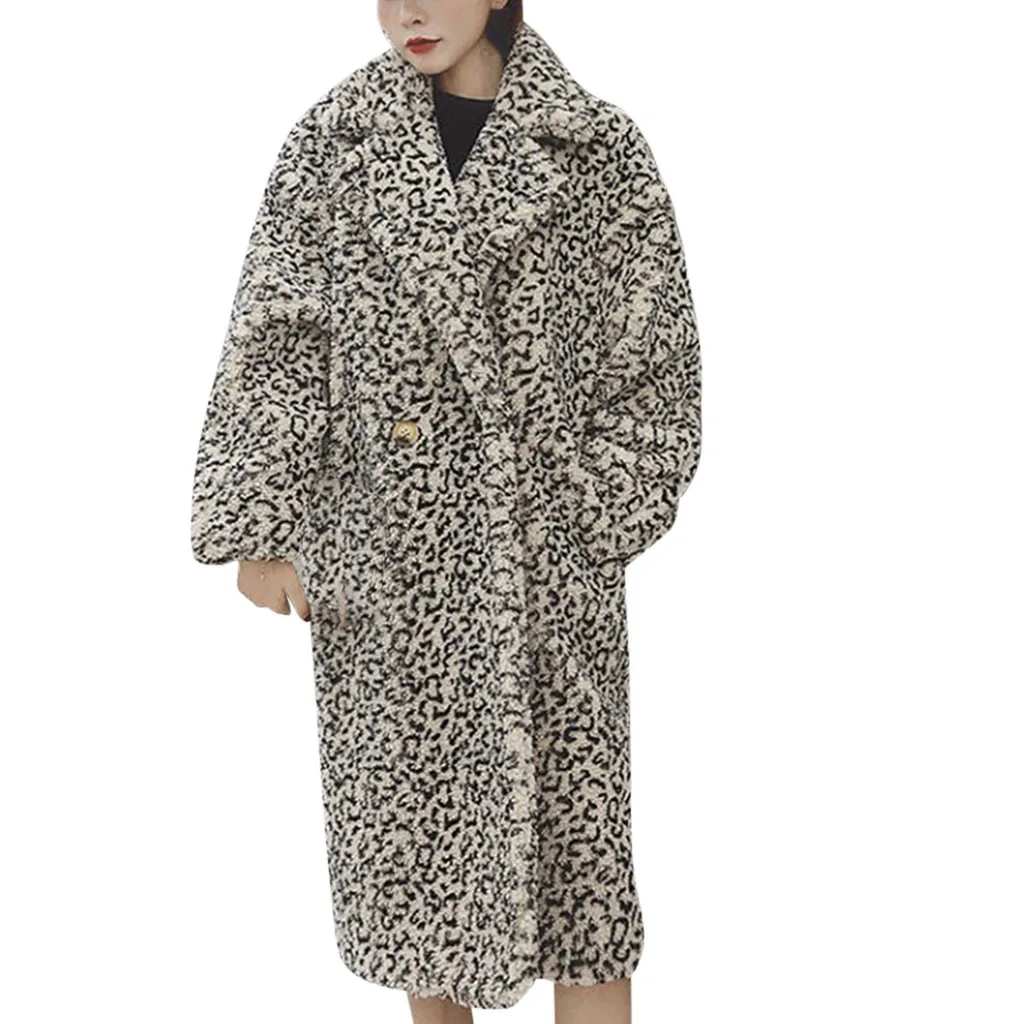 Женская модная Осенняя свободная ветровка средней длины с леопардовым принтом, пальто из овечьей шерсти