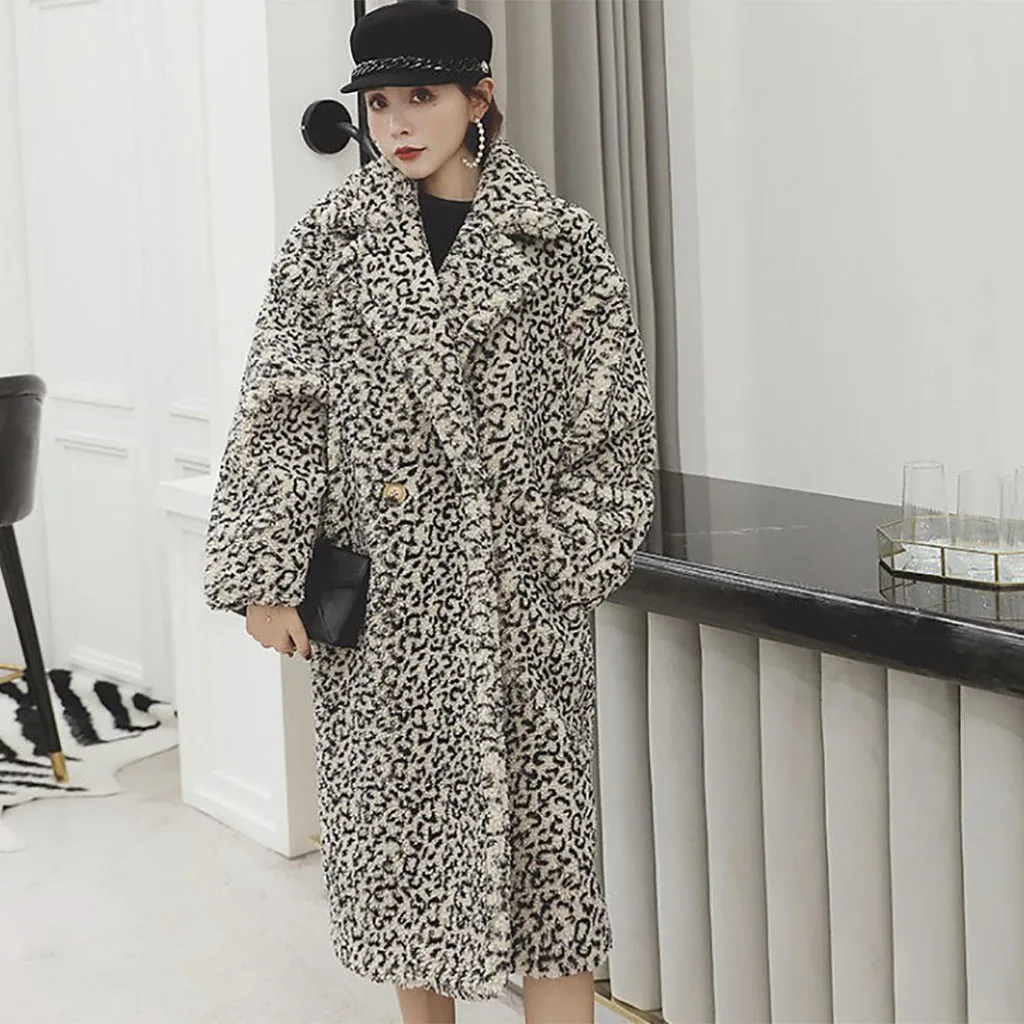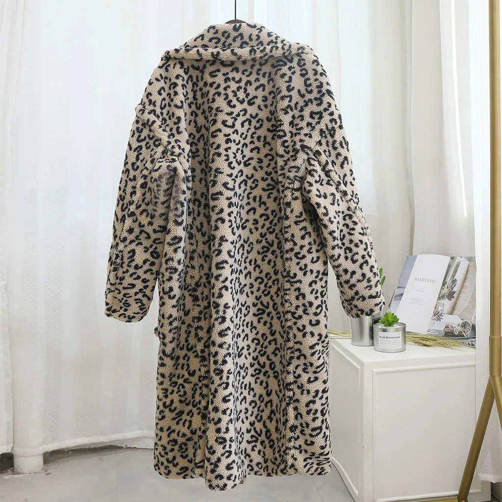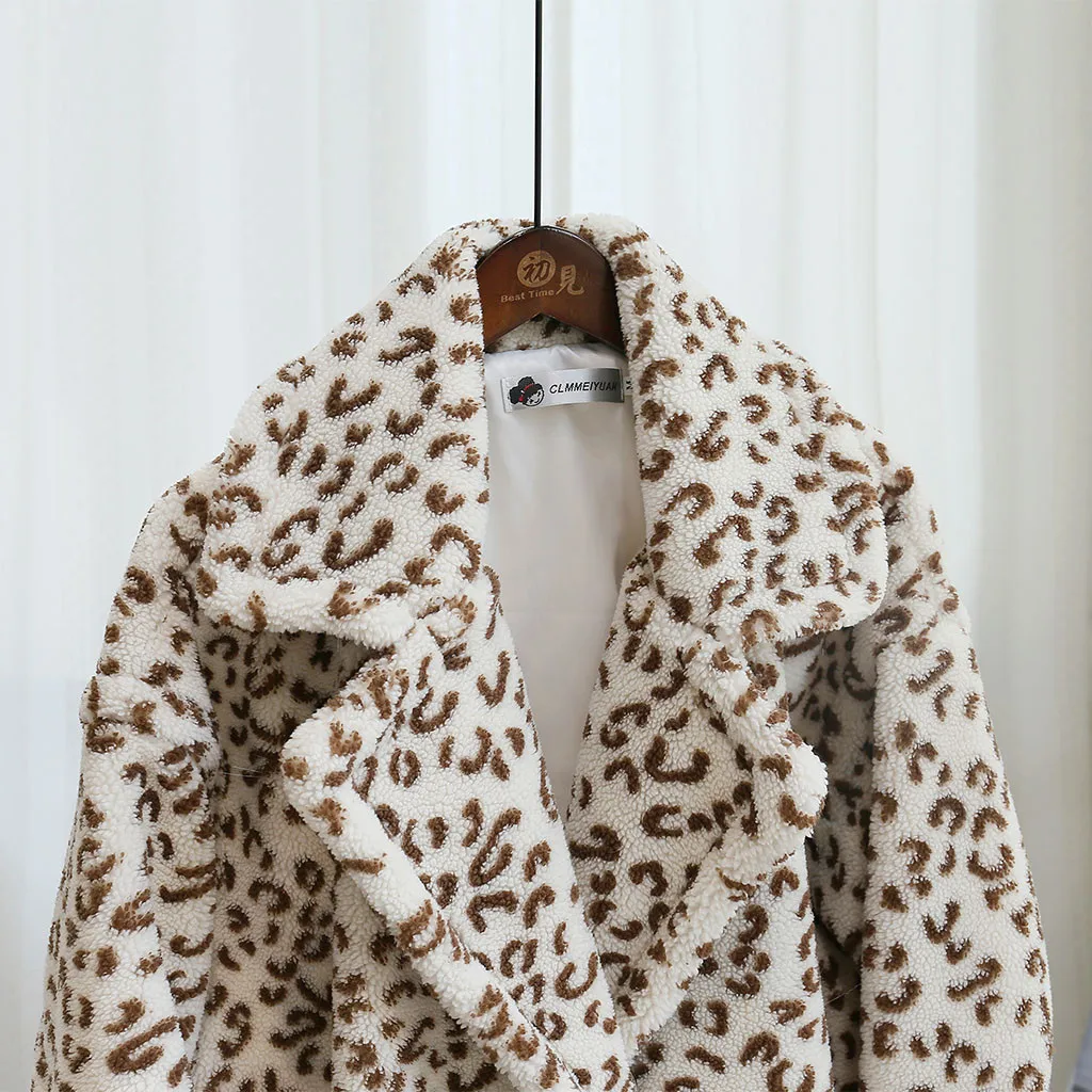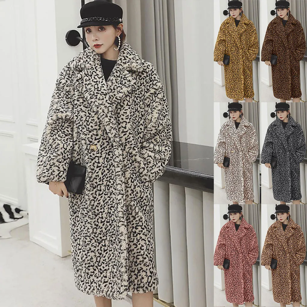 Женская модная Осенняя свободная ветровка средней длины с леопардовым принтом, пальто из овечьей шерсти
