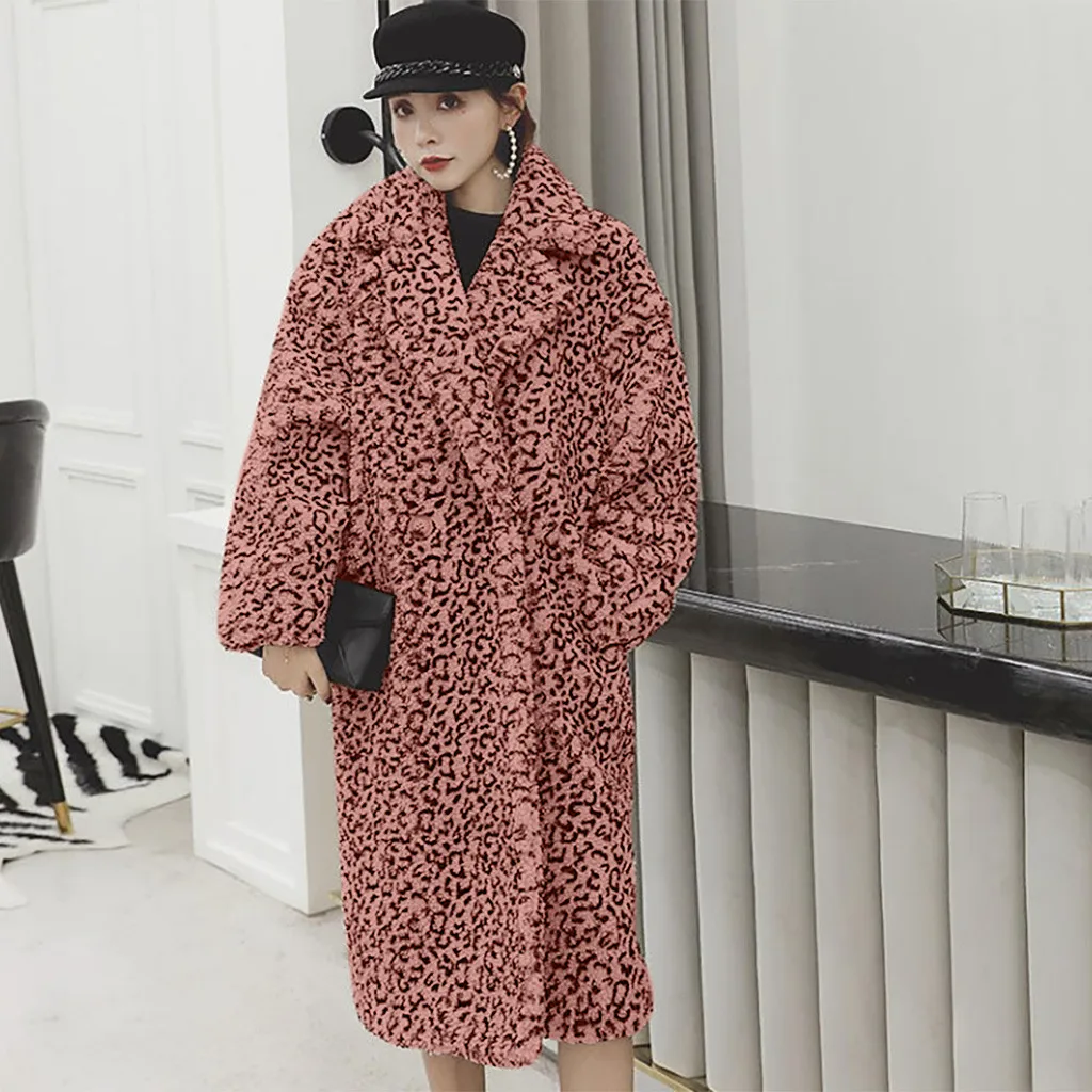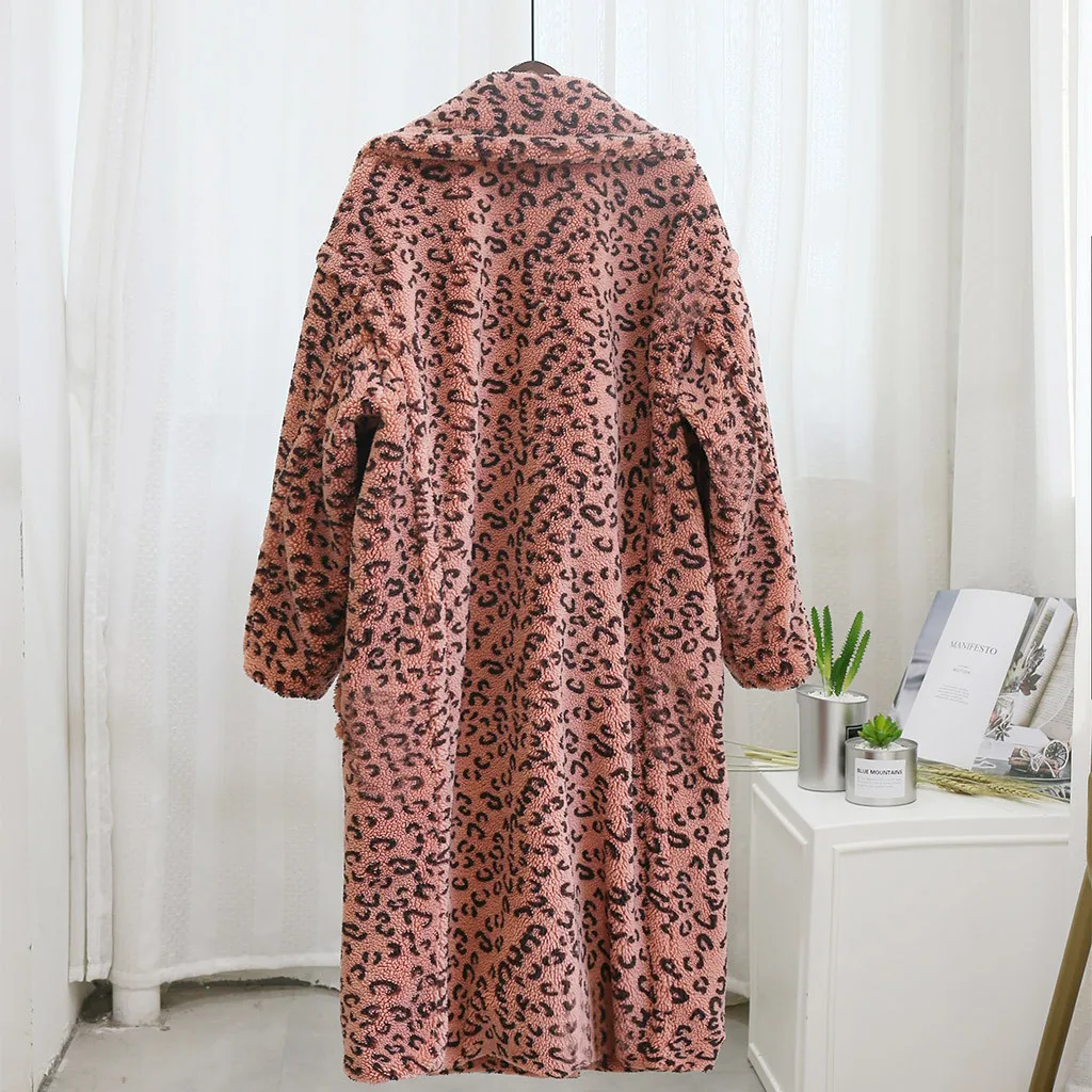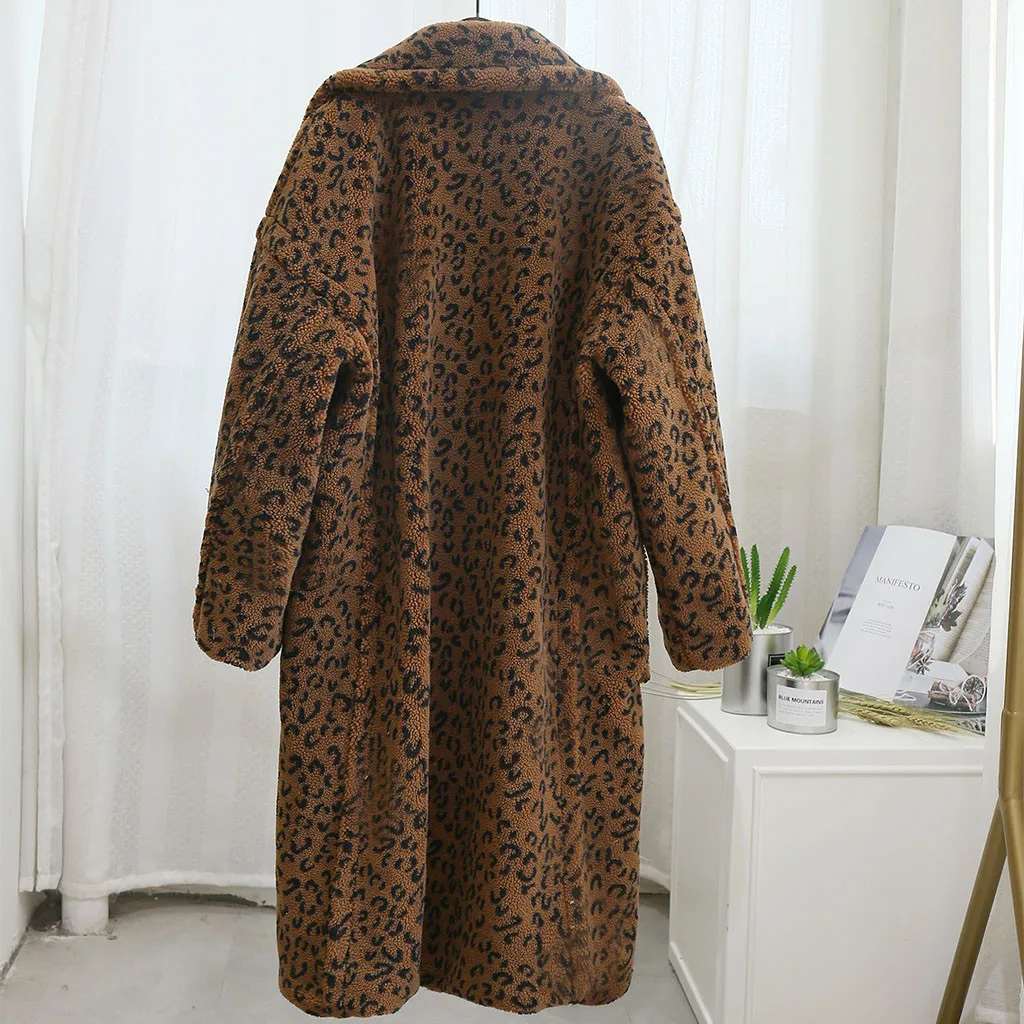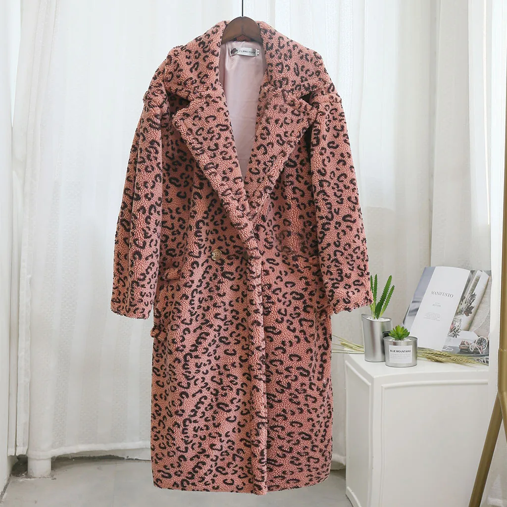 Женская модная Осенняя свободная ветровка средней длины с леопардовым принтом, пальто из овечьей шерсти