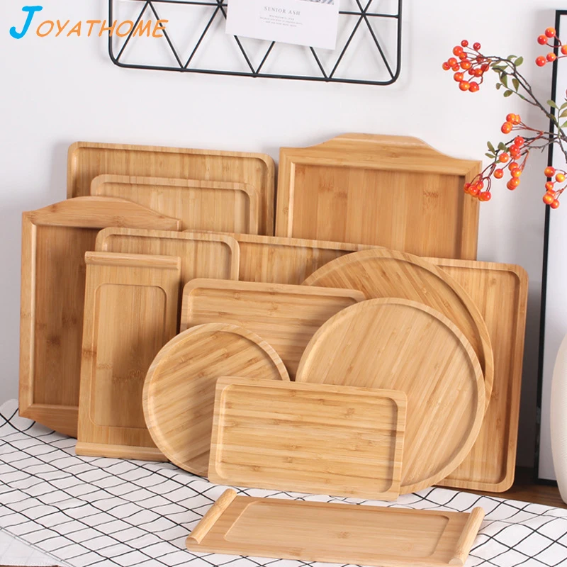Название: японский стиль Бамбуковый лоток поднос для чайных чашек Деревянный прямоугольник круглая пластина кухонный Органайзер лоток для еды вечерние лотки