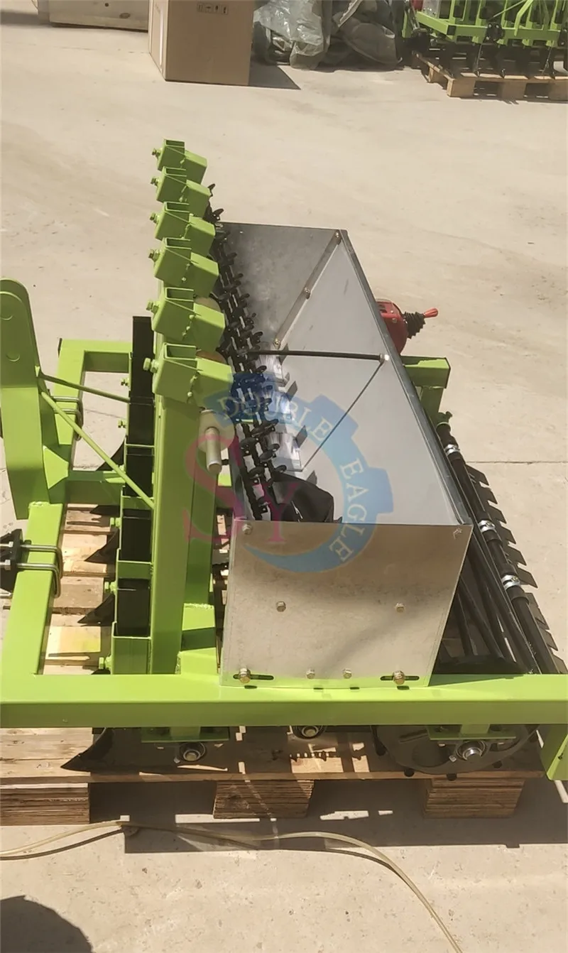 Четырехколесная Тракторная Тяговая машина для сева чеснока шириной 120 см, шесть рядов, расстояние между растениями 5 см или 13 см, расстояние между рядами 20 см, регулируемая глубина, требуется более 10 лошадиных сил четырехколесный тракторный ремень, может сеять более 20 му земли каждый день