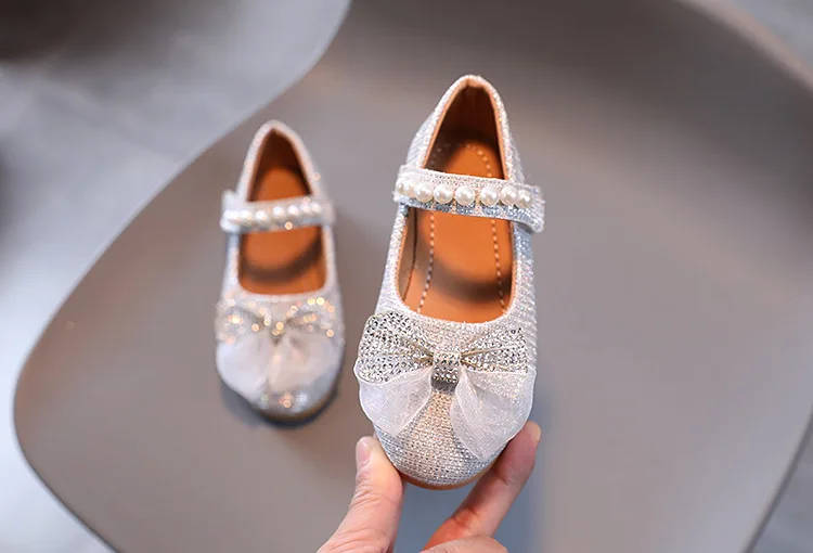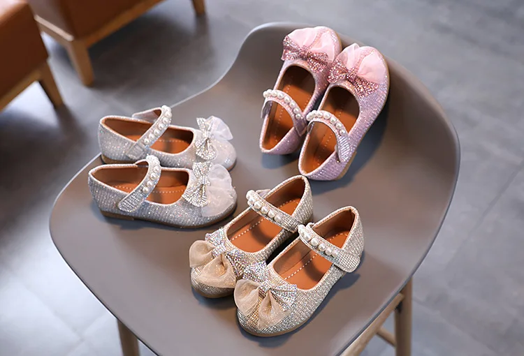 Новые осенние туфли для девочек; Детские свадебные и вечерние туфли принцессы с мягкой подошвой; Кожаные туфли для девочек; Цвет розовый, серебристый, золотистый; 1, 2, 3, 4, 5, 6, 7, 8, 9, 10, 11, 12 лет