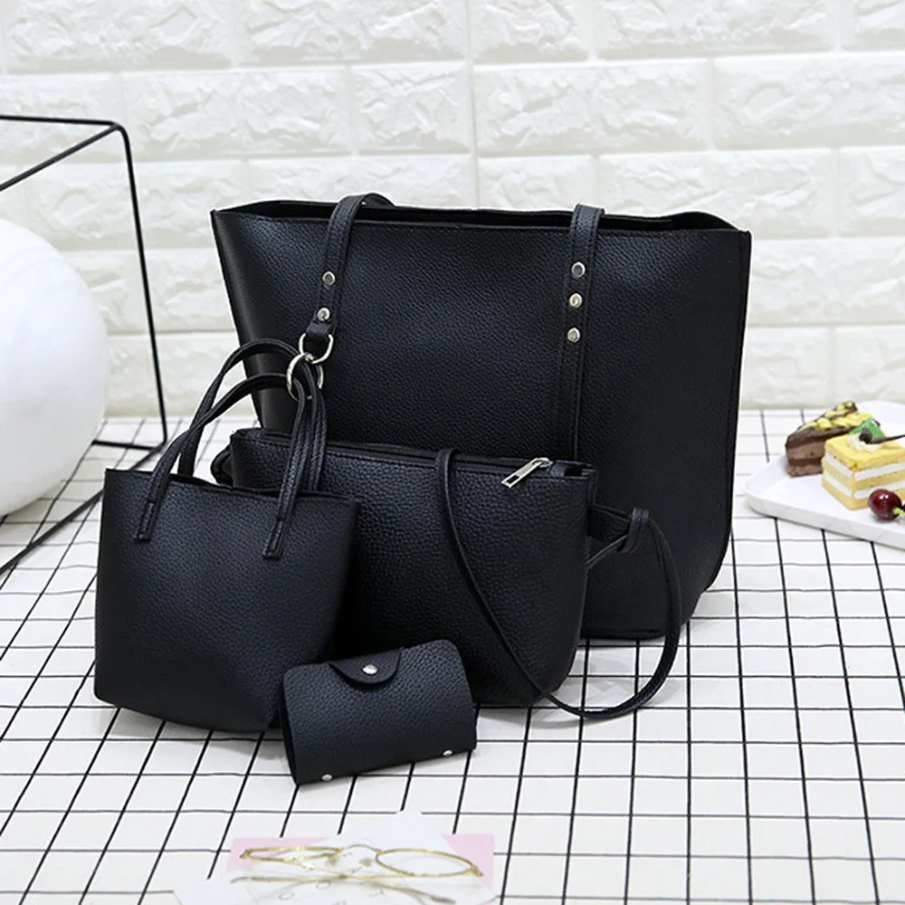 4 шт женская кожаная сумка на плечо с узором + сумка через плечо + сумочка + кошелек