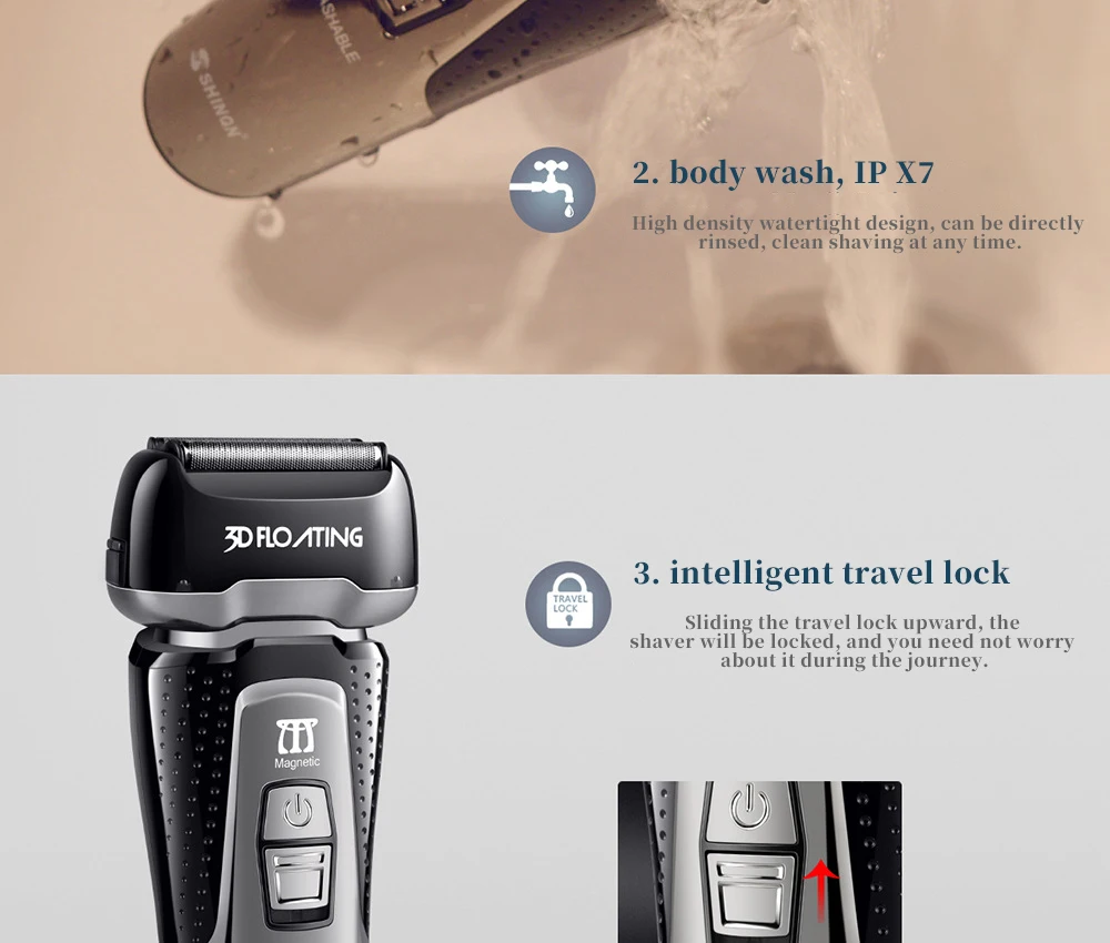 Новейшая Влажная/сухая Бритва для мужчин электрическая бритва перезаряжаемая машинка для бритья тела Водонепроницаемая бритва для бороды Чистка