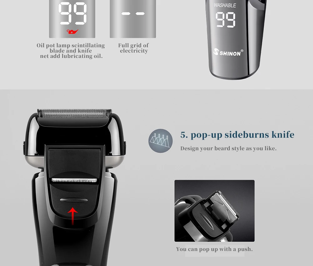 Описание: Всего тела моющиеся 1,5 часов зарядки, разрядки за 60 минут AC: 100-240 V 50/60 HZ 5 W Автоматическая технология измельчения режущих инструментов Универсальный держатель для сотового телефона должен быть доказательство Глобальный напряжения Используйте лезвие для резки высокой твердости Разумная конструкция конструкции, три ножевых головки сотрудничают друг с другом