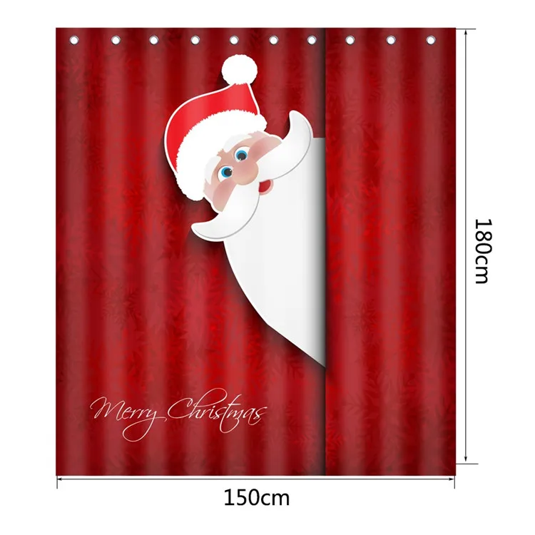 Christmas Bathroom set Santa Claus Bath Shower Curtain Toilet Mats Christmas Decorations for Home Material: Rubber for mat, Polyester for Bath Curtain Mat Size: 40*60cm Curtain Size: 150cm(width)*180cm(Height) Type: Christmas Bath Mat Curtain Packing: 1pc Mat or 1pc Curtain or 1set(curtian+Mat) Warm Tips: 1. Due to the light and screen difference, the color may be slightly different from the pictures. 2. Please allow 1-5cm differences due to manual measurement. 3. Because of transportation, there will crease line, it will disappear after you lay it on the floor for few days.