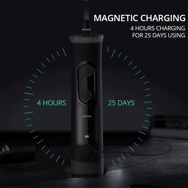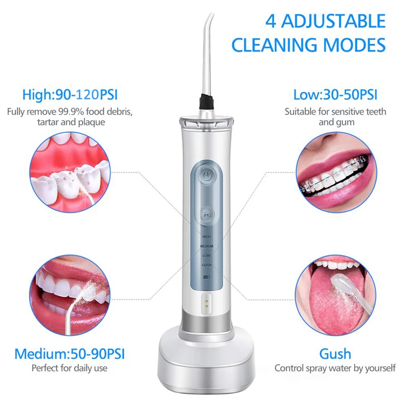 Высокий режим: 90-120PSI, полностью удаляет 99.99% пищевой мусор, зубной камень и зубной налет