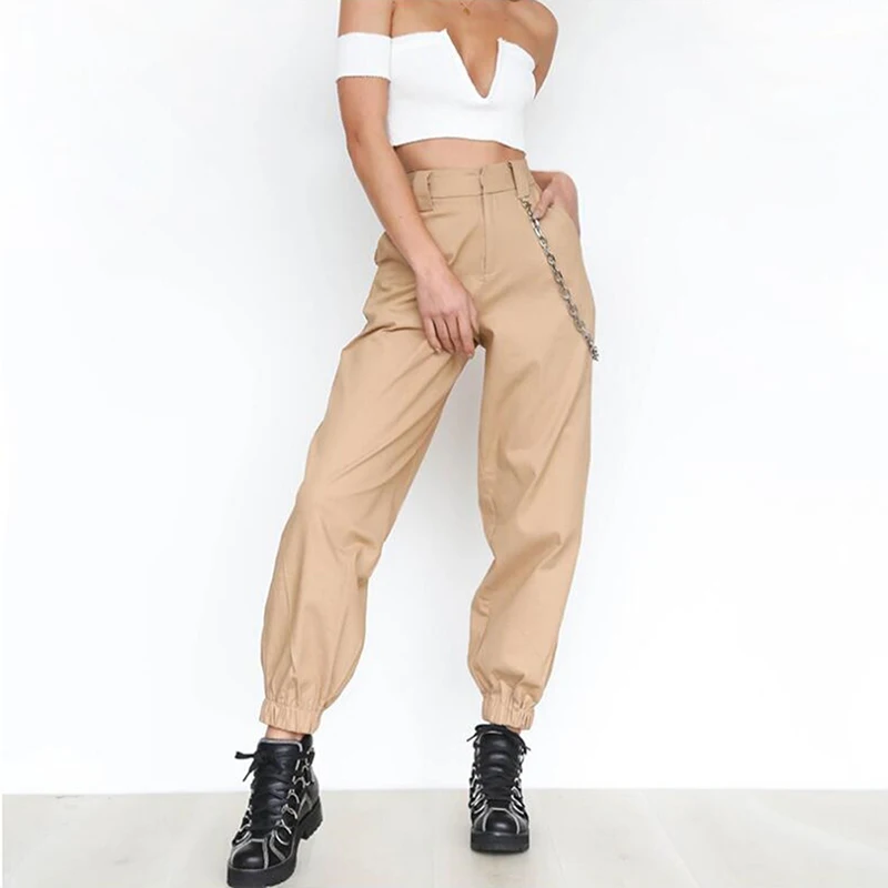 Осенние винтажные черные брюки карго с цепочкой, женские брюки со средней талией, мешковатые джоггеры, женские уличные брюки размера плюс