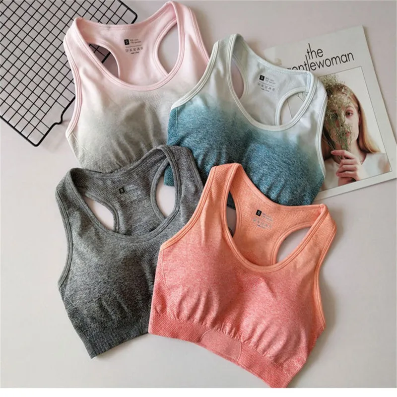 Женский спортивный бюстгальтер пуш-ап, спортивный бюстгальтер для бега, топ с подкладкой, для тренировок, для активного бега, Женский лифчик для фитнеса, Омбре