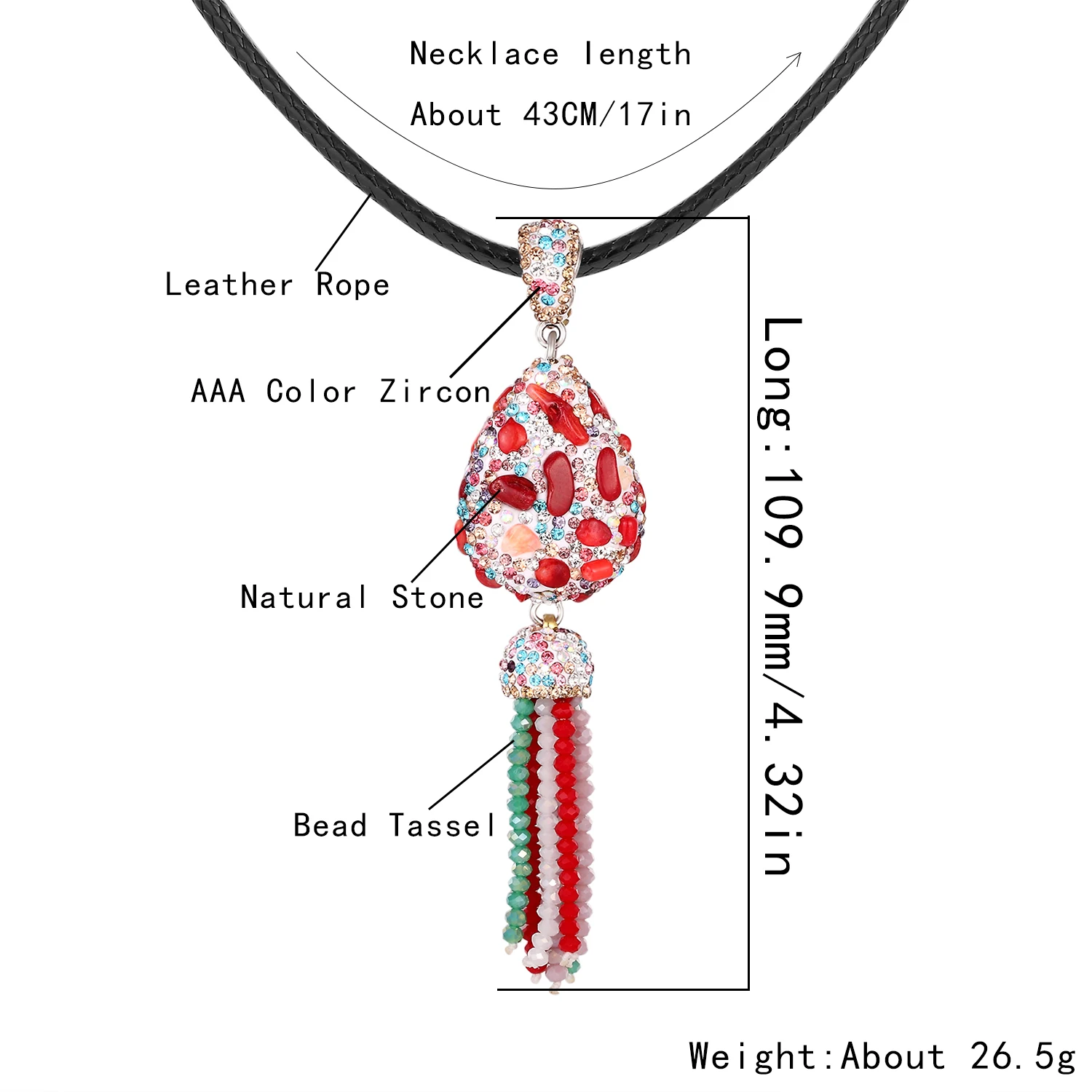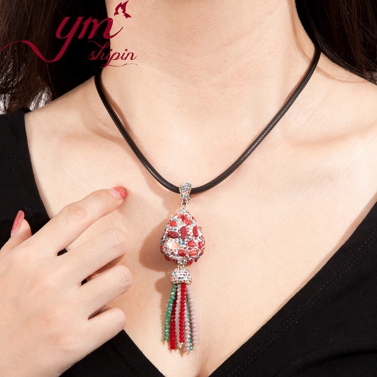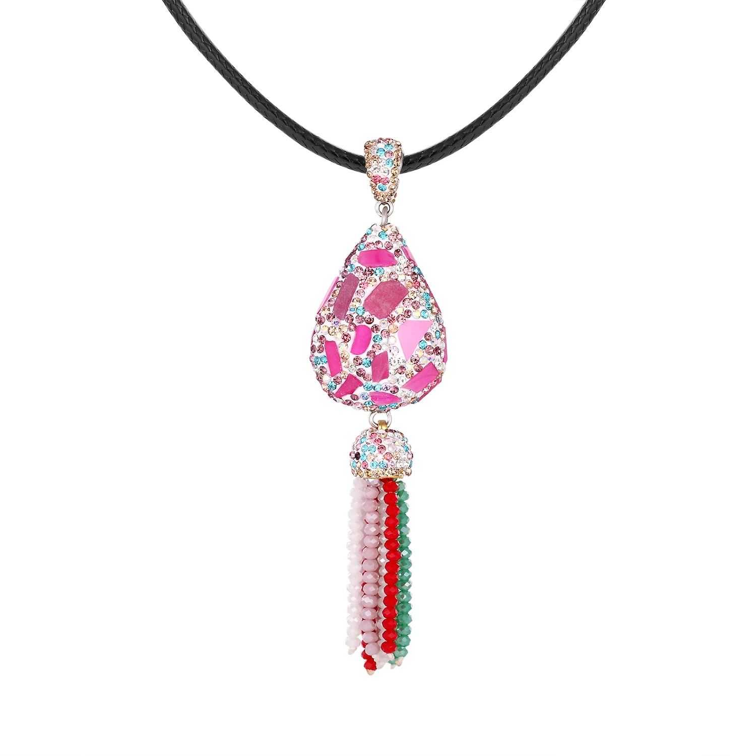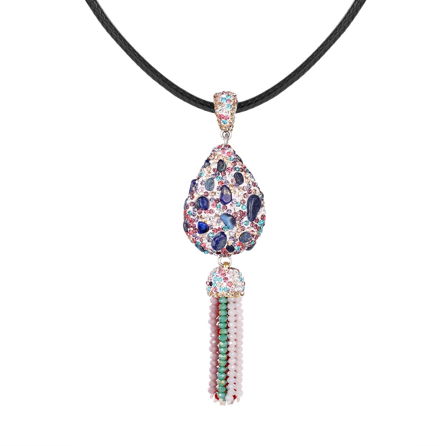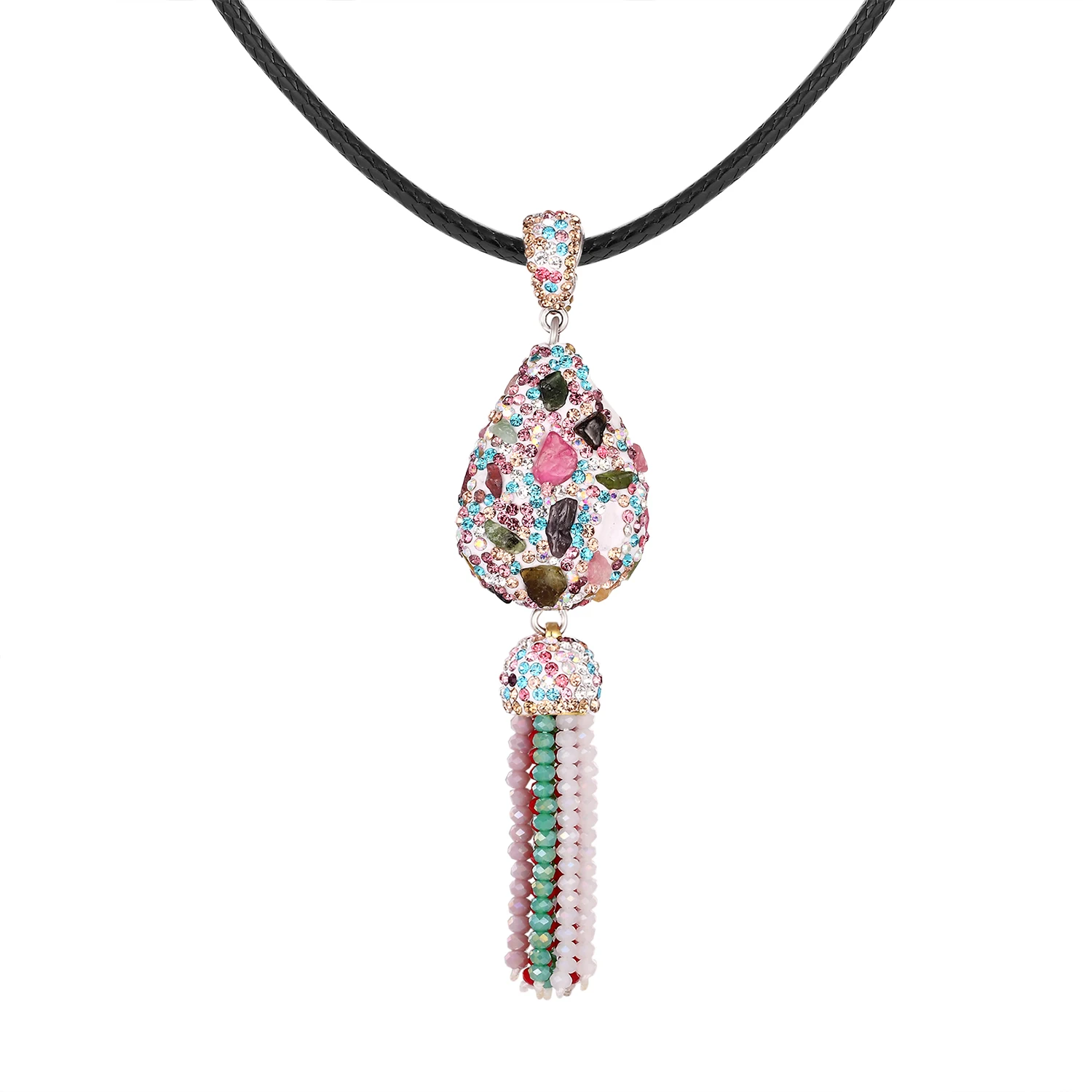 Кулон с кисточкой, ювелирные изделия ручной работы, длинное ожерелье 2019, женское цветное кубическое циркониевое металлическое кожаное веревочное ожерелье
