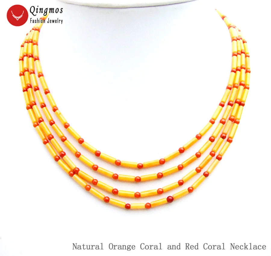 Fashion 3*9mm OrangeThick Slice Coral Necklace for Women with 3-4mm Round Red Coral Necklace Jewelry 4 Strands Chokers 17'' nec6573