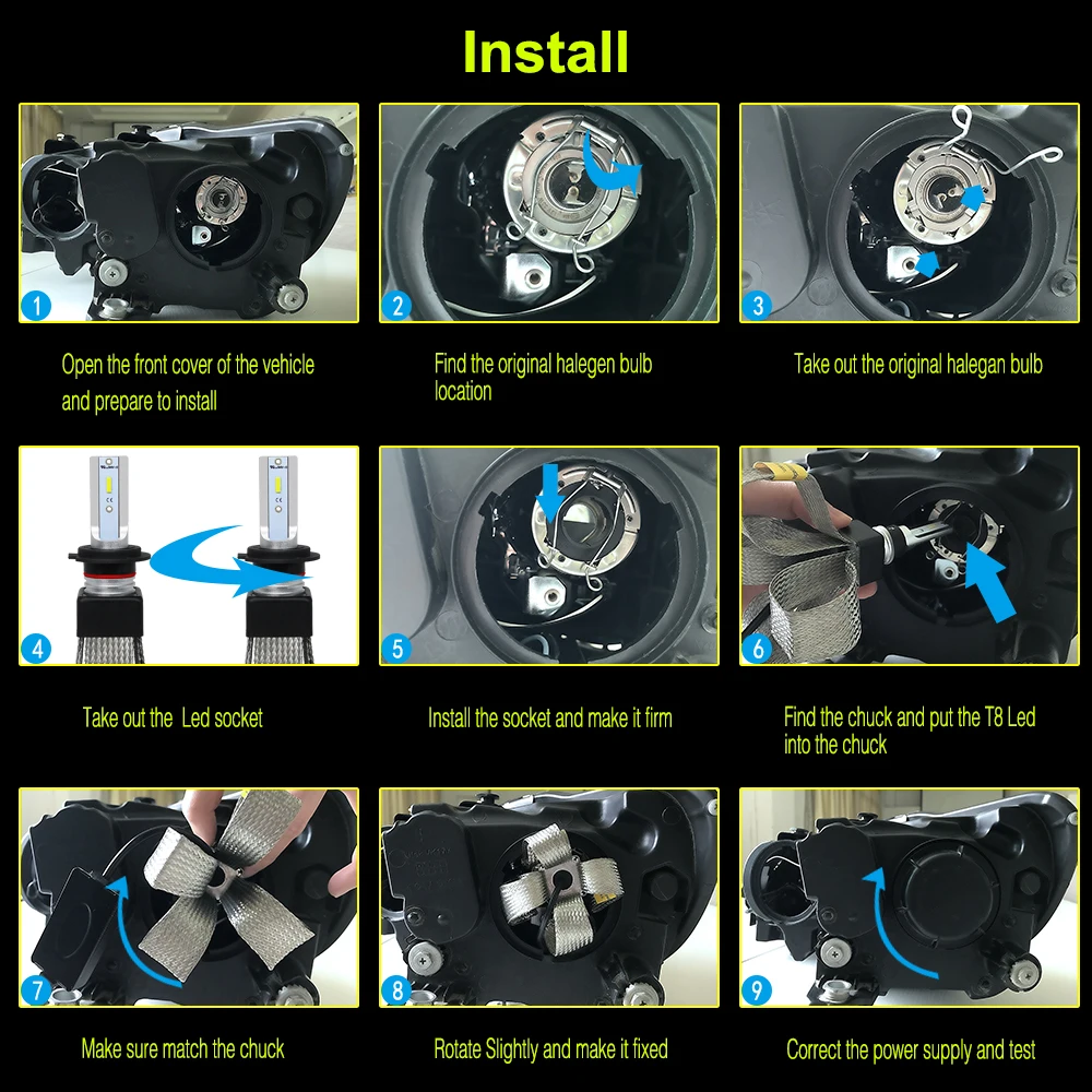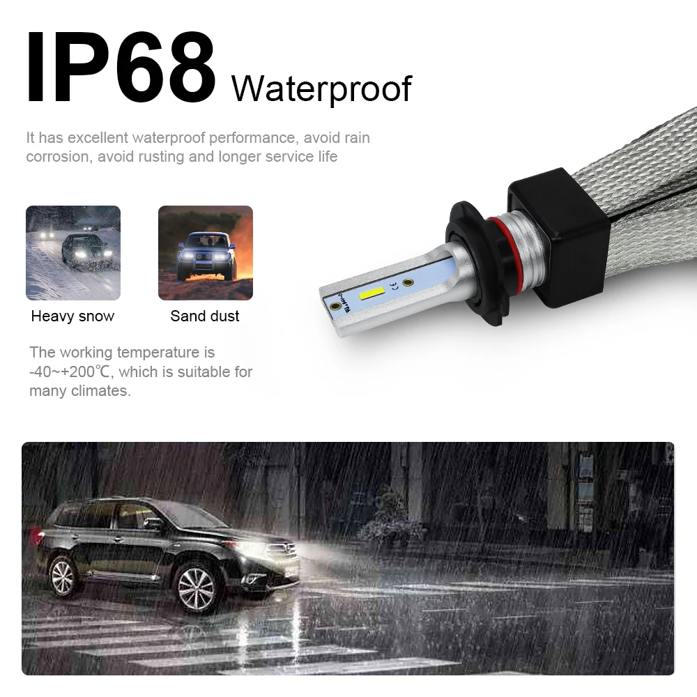 Параметры: 1. Напряжение: DC12V-24V 2. Водонепроницаемость: IP68 3. Цветовая температура: 6000K 4. Мощность: 110 Вт/комплект (55 Вт/лампа) 5. Люмен: 16000LM/набор 8000LM/лампа 6. Срок службы: более 50000 часов 7. Рабочая температура: от-40 до + 80 градусов 8. Светильник источник света: яркий csp-кристаллов 9. Материал: авиационный алюминий, измельчитель 10. Использование: подходит для автомобилей, грузовиков, внедорожников, противотуманных фар