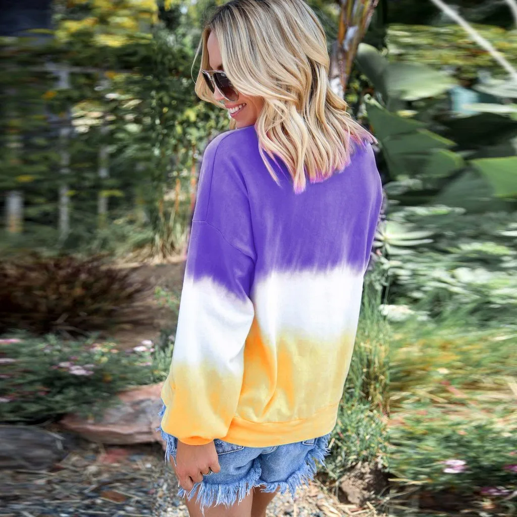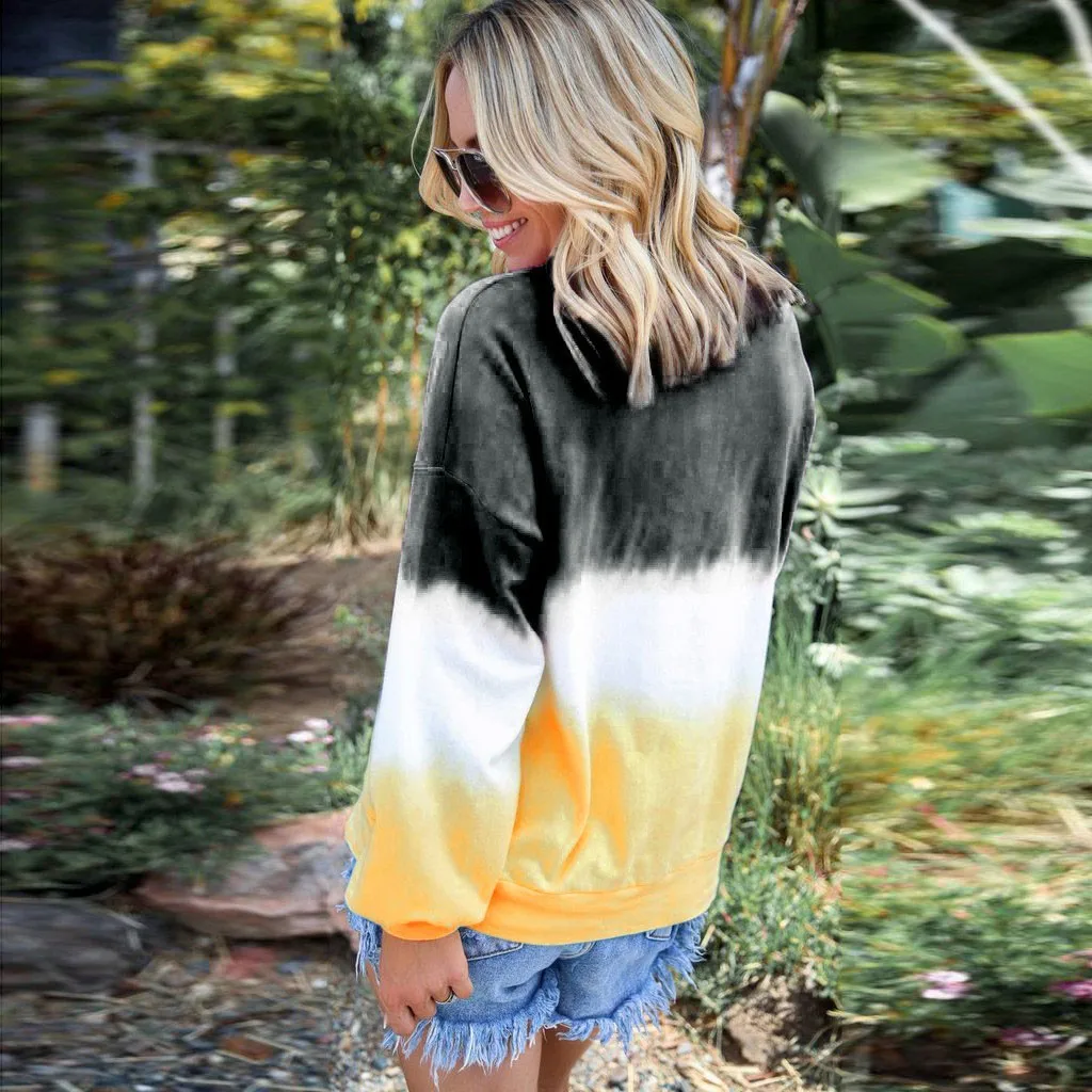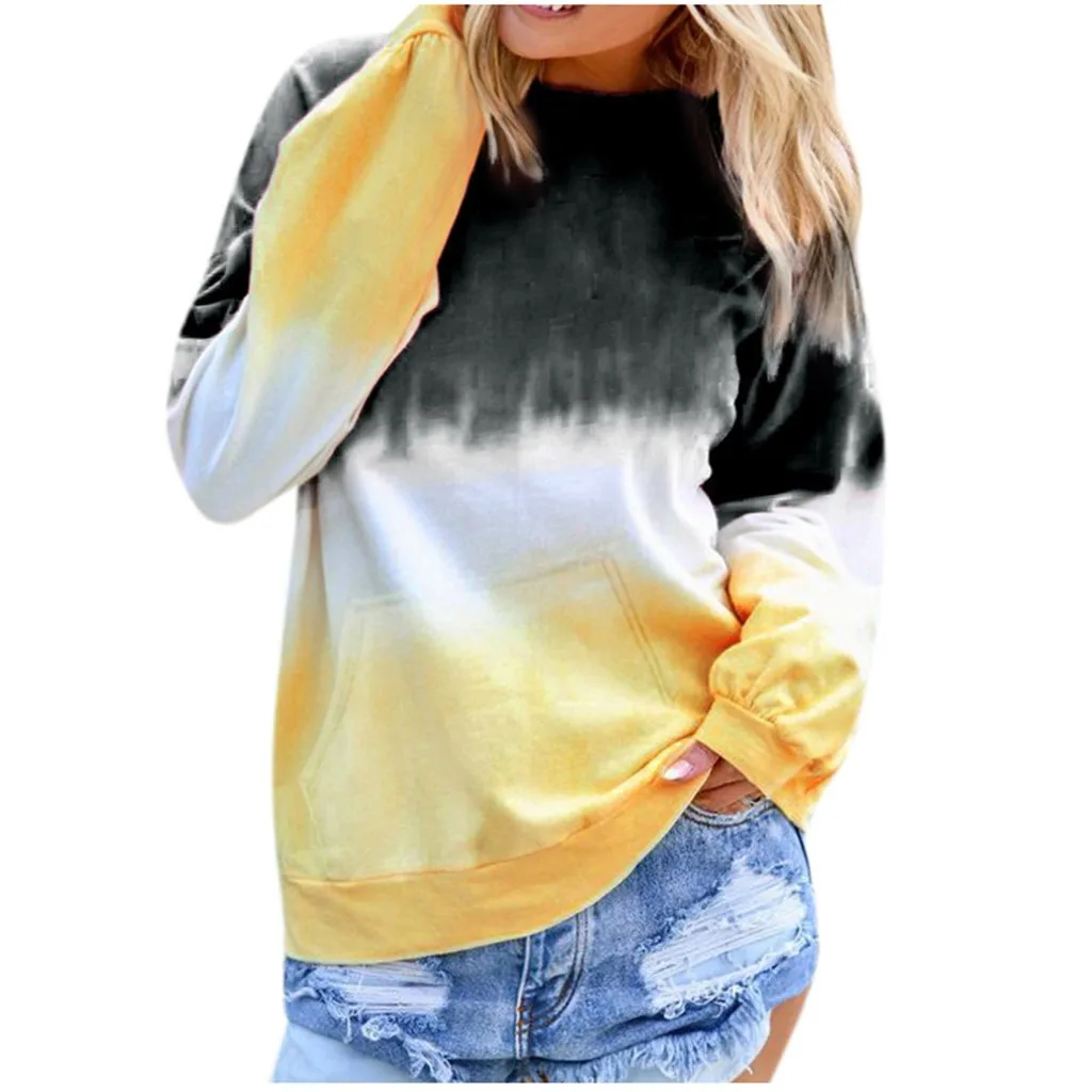 Женская Повседневная контрастная цветная рубашка пуловер с длинными рукавами Толстовка С Карманами Топы