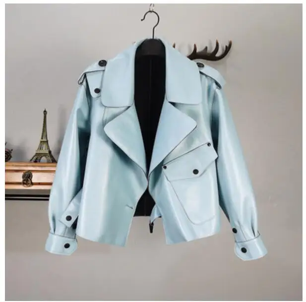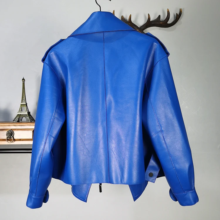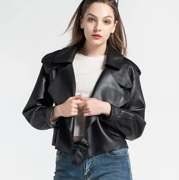 Женская куртка из натуральной овечьей кожи на осень и зиму, мотоциклетная верхняя одежда на пуговицах черного, красного, серого цвета размера плюс XXXL, 2019