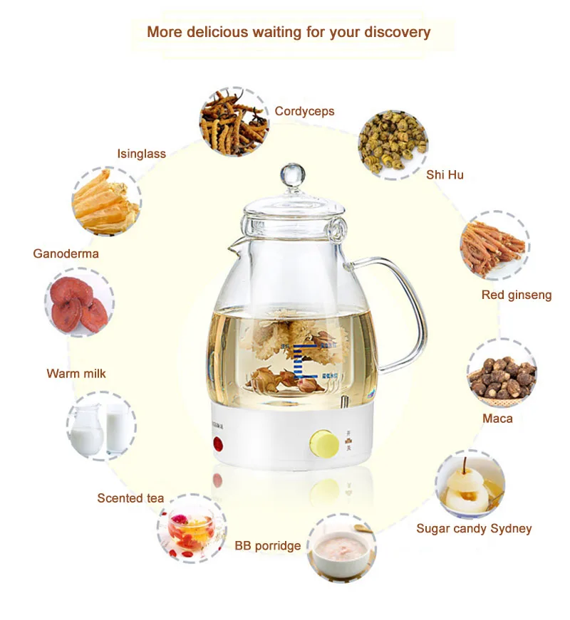 Совет: Этот продукт содержит Птичье гнездо stew. Если вам нужен Чайный фильтр, пожалуйста, выберите соответствующий вариант. Дизайн продукта: 1. Автоматическое отключение питания после тушения, не нужно смотреть 2. Автоматический «Wenwu Fire» не только гарантирует вкус сырья, но и сохраняет питание. 3,4 режимов тушения для удовлетворения спроса 4. Корпус из боросиликатного стекла + 304 шасси из нержавеющей стали, здоровья и безопасности