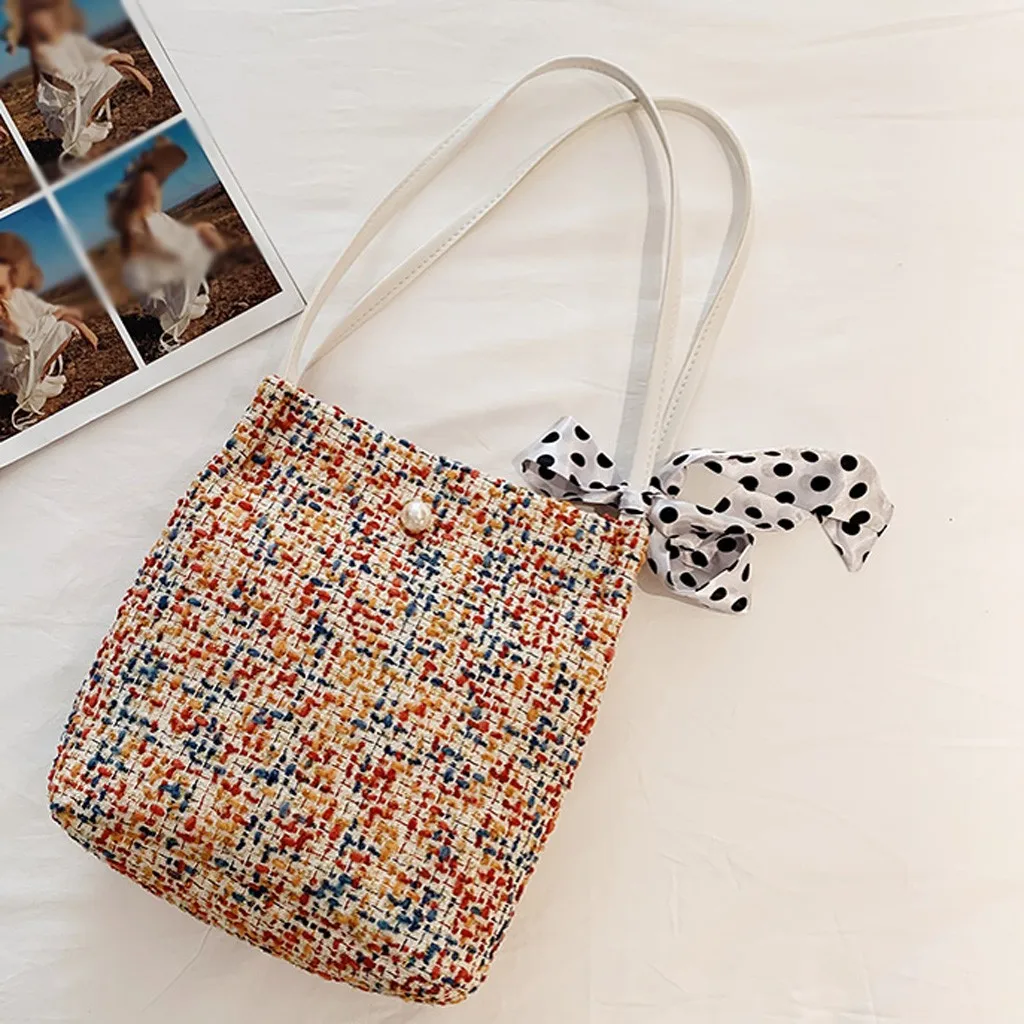 Модные женские цветные тканыеШелковый шарфСумка через плечо пляжная сумка