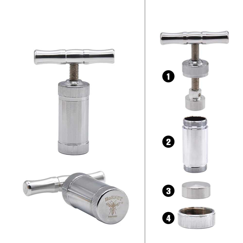 Очень практичная металлическая сигаретница используется при нажатии, чтобы выдавить листья в торт для хранения.