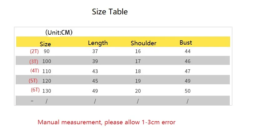 2. Пожалуйста, внимательно проверьте таблицу размеров перед покупкой товара.