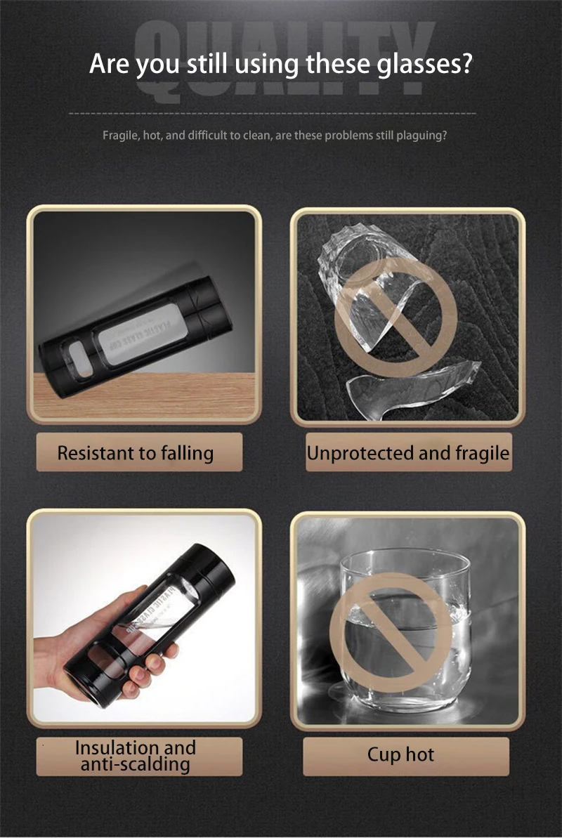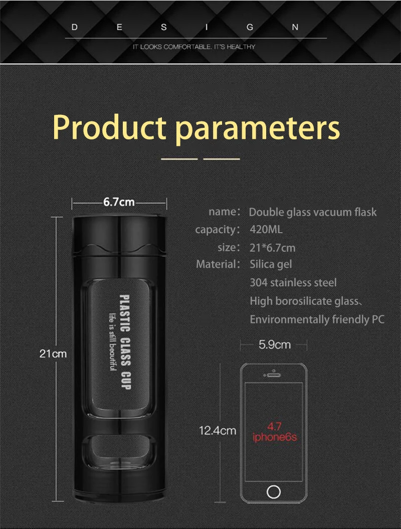 Термос с двойным стеклом, кружка, термоемкость 420 мл, Термокружка, Модные вакуумные фляжки, чашки, пластиковая стеклянная чашка, Мужская вакуумная фляжка 210 мм * 67 мм