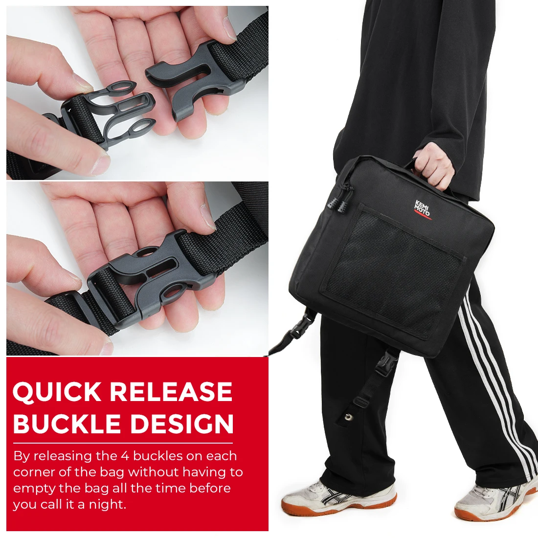 Материал: устойчивый к атмосферным воздействиям тяжелый нейлон duty1680D Цвет: черная сумка с серой строчкой