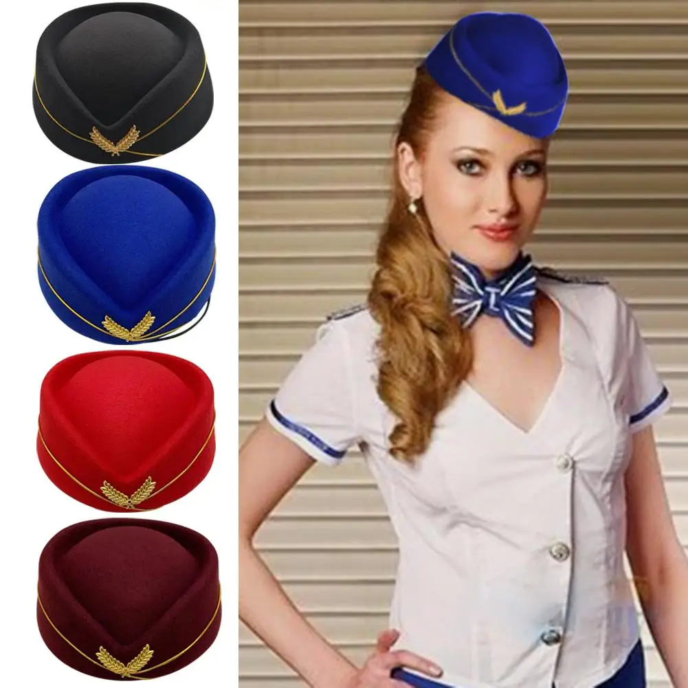 Войлочная коробочка для таблеток стюардесс берет шляпу базовый Кепки Стюардесса Авиакомпании сексуальная униформа шляпа Кепки s аксессуар