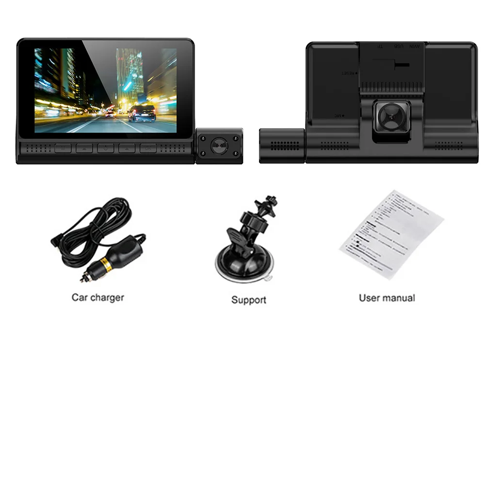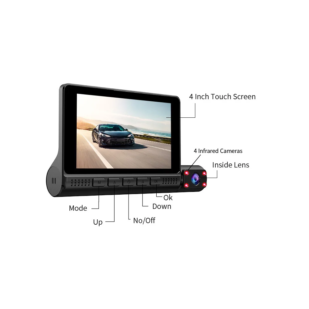 Три изображения камеры на дисплееПомимо переднего и заднего вида, вы также можете наблюдать за всем, что происходит внутри автомобиля. Можно выбрать другой режим просмотра экрана, до и после двойной записи, автомобиль внутри и снаружи той же записи, большой широкий угол высокого разрешения качество изображения, более широкое видение, вождение более безопасным.