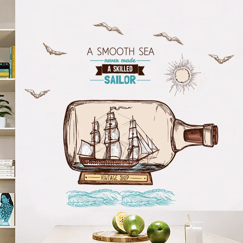 Стикеры стены Стикеры s Гостиная Украшение стены творческий прикроватная тумбочка для спальни теплом помещении макет обои бутылка фреска "лодка"