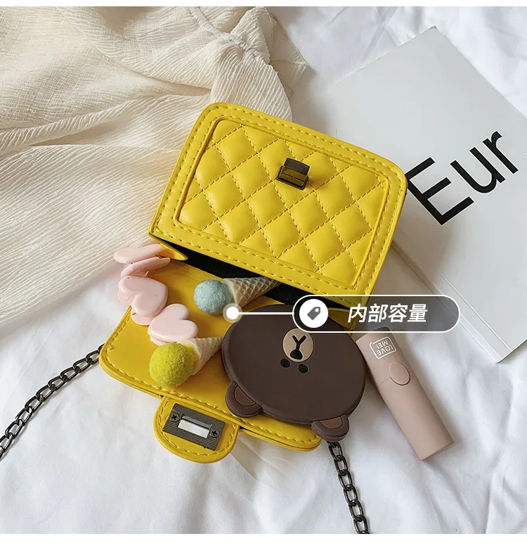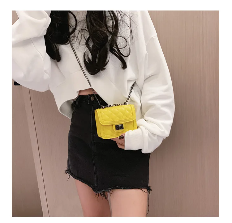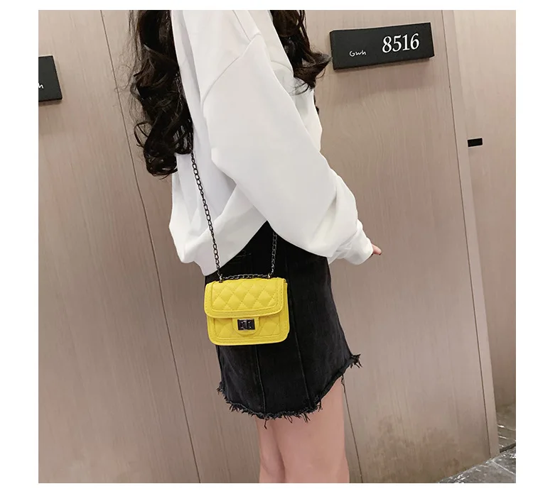 Брендовая дизайнерская детская маленькая сумка-мессенджер с цепочкой, модные сумочки для девочек, клатч, яркие цвета, корейские мелкие деньги, сумка