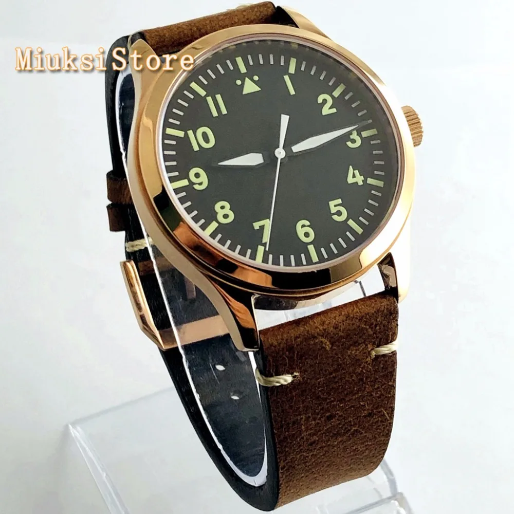 42 мм Corgeut чехол из розового золота сапфировое стекло черный циферблат Автоматические часы циферблат белый знак светящиеся Мужские механические часы