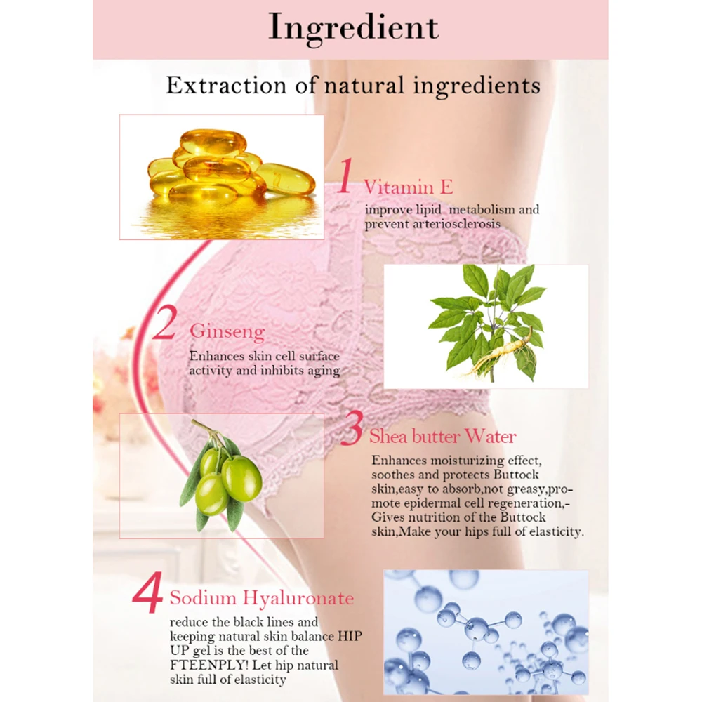 Питательные вещества в продукте могут проникать в кожу, питают клетки кожи, стимулируют рост мышц ягодиц и делают бедра тугими.
